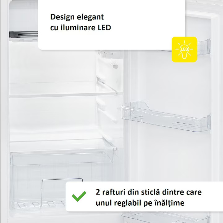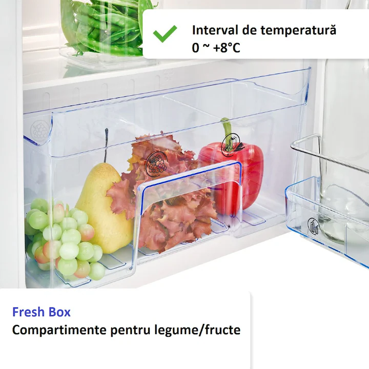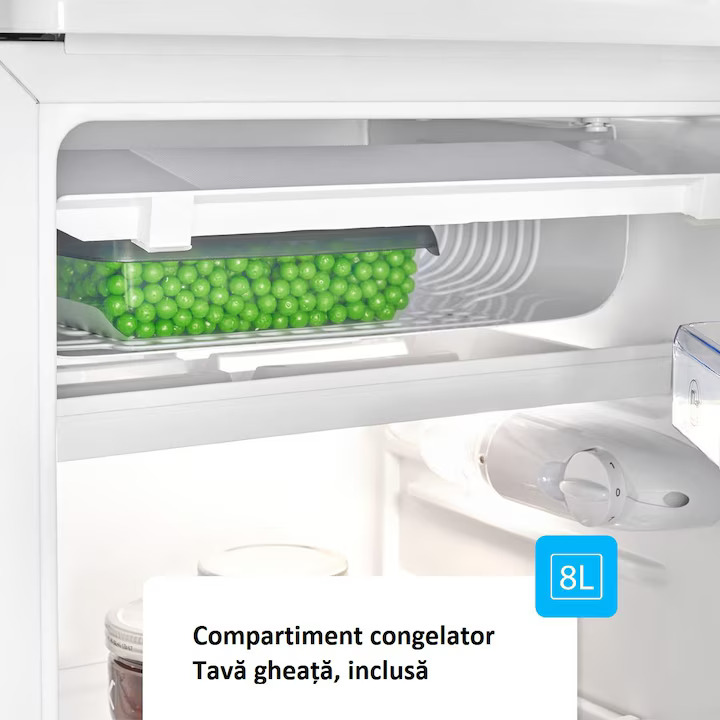 Congelatorul va permite sa stocati alimente semipreparate, inghetata sau legume congelate. Acesta are inclus si un suport pentru cuburi de gheata.