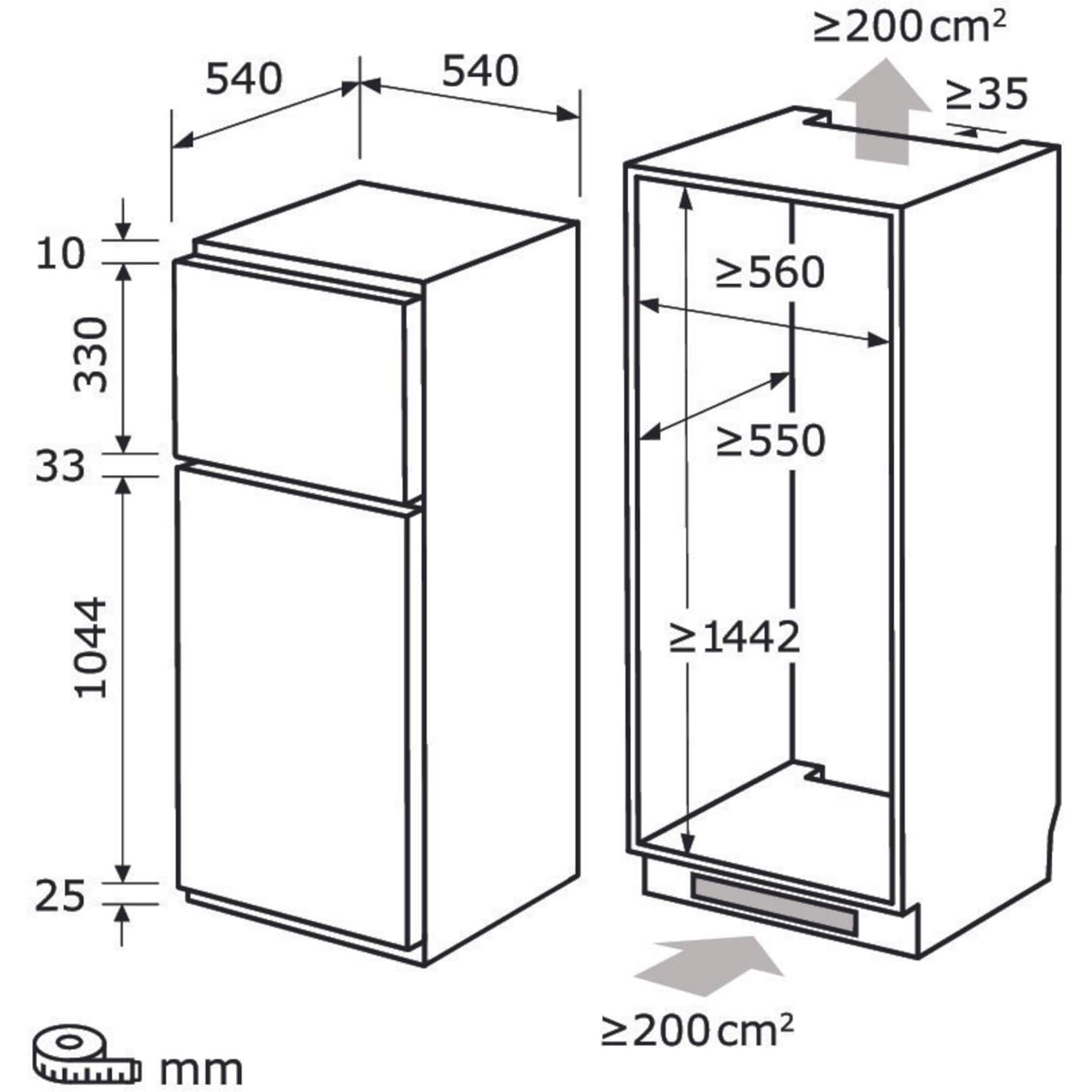 *Se recomanda pastrarea unui spatiu suplimentar de 5 cm pentru o ventilatie optima.