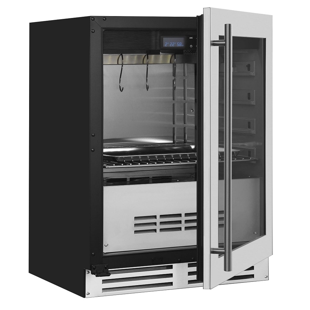Frigiderul pentru maturat carne Dry Aged este un frigider premium pentru maturarea si depozitarea carnii, ce foloseste tehnologia de inalta calitate, cu compresor, special conceputa pentru mentinerea unei temperaturi constante. Frigiderul are un volum total de 127 litri ce poate fi utilizat, iar temperatura si umiditatea sunt reglabile.