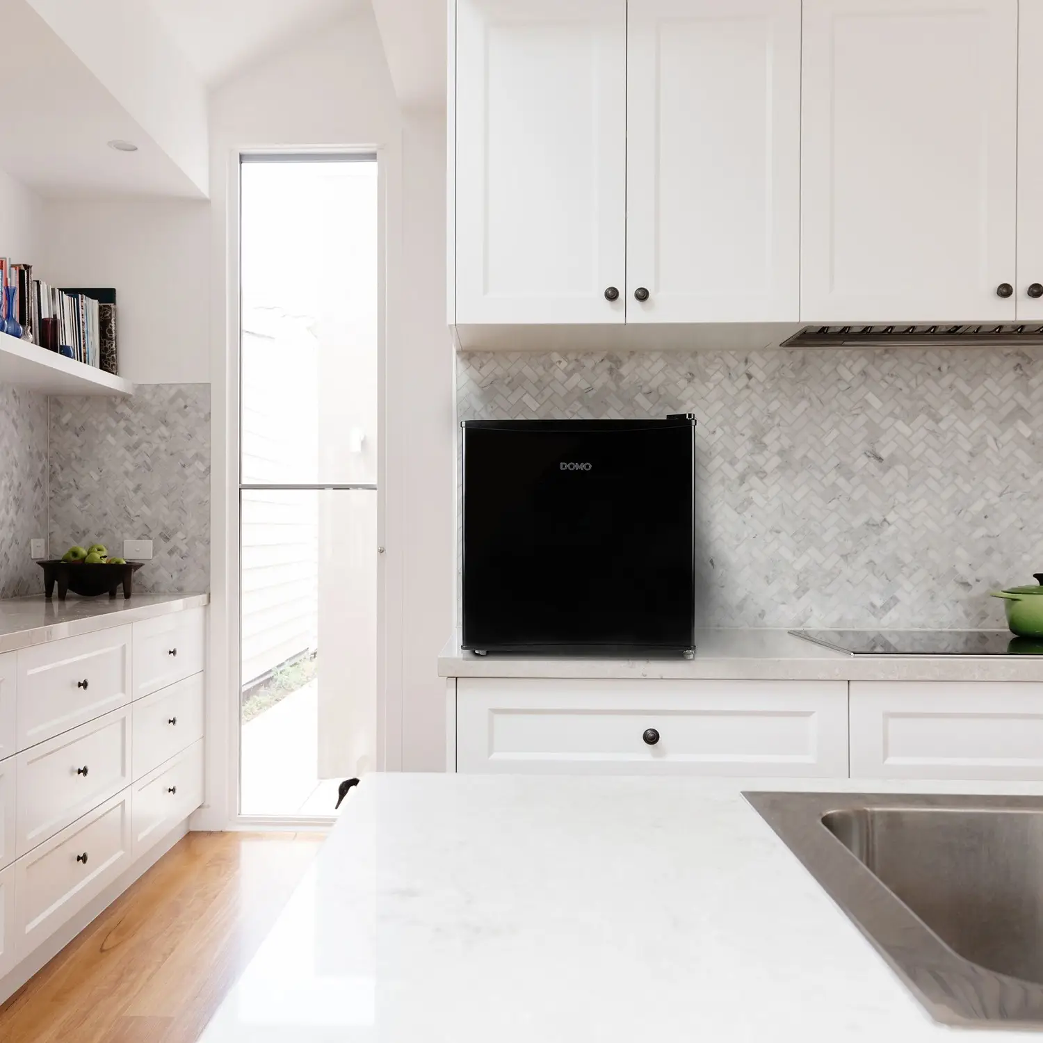 Elegantul frigider minibar, de la brandul belgian DOMO, este proiectat pentru a se potrivi atat in camerele de hotel, restaurant, birou, dar si intr-o casa de vacanta, bucatarie de vara, garaj etc.