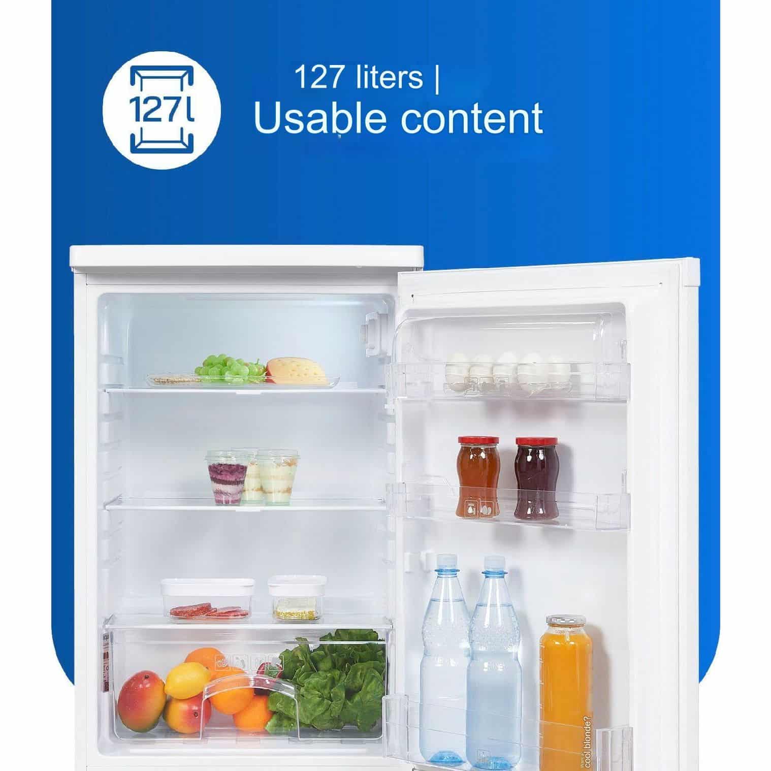 Frigiderul minibar undercounter de la producatorul german Exquisit este realizat conform ultimelor tehnologii, cu atentie la detalii si materiale de inalta calitate. Acesta dispune de o capacitate totala de 127 litri, ceea ce-l face ideal pentru o cabana, o bucatarie de vara sau o casa de vacanta. Interiorul permite depozitarea alimentelor cat mai practic, usa avand 3 compartimente potrivite pentru depozitarea sticlelor de apa sau lapte.