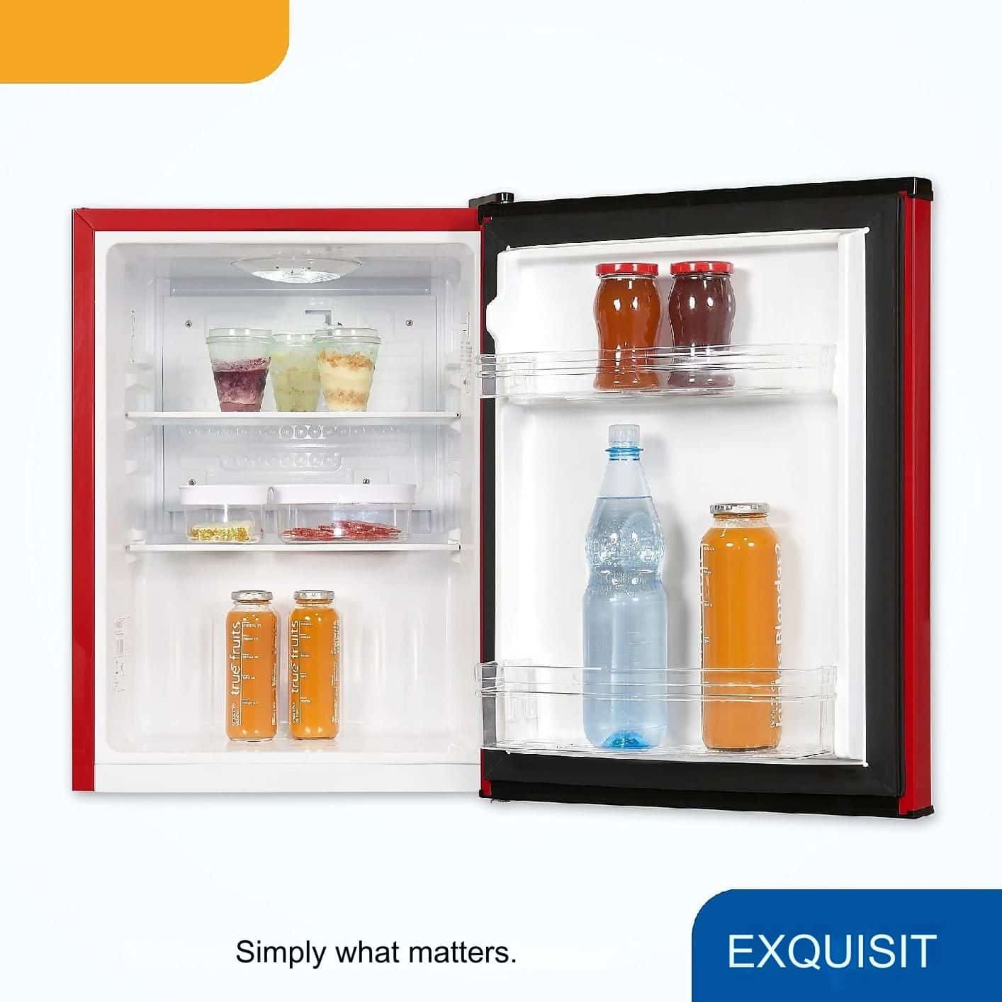 Frigiderul minibar undercounter de la producatorul german Exquisit este realizat conform ultimelor tehnologii, cu atentie la detalii si materiale de inalta calitate. Acesta dispune de o capacitate totala de 52 litri, ceea ce-l face ideal pentru o cabana, o bucatarie de vara sau o casa de vacanta. Interiorul permite depozitarea alimentelor cat mai practic, usa avand 2 compartimente potrivite pentru depozitarea sticlelor de apa sau lapte.