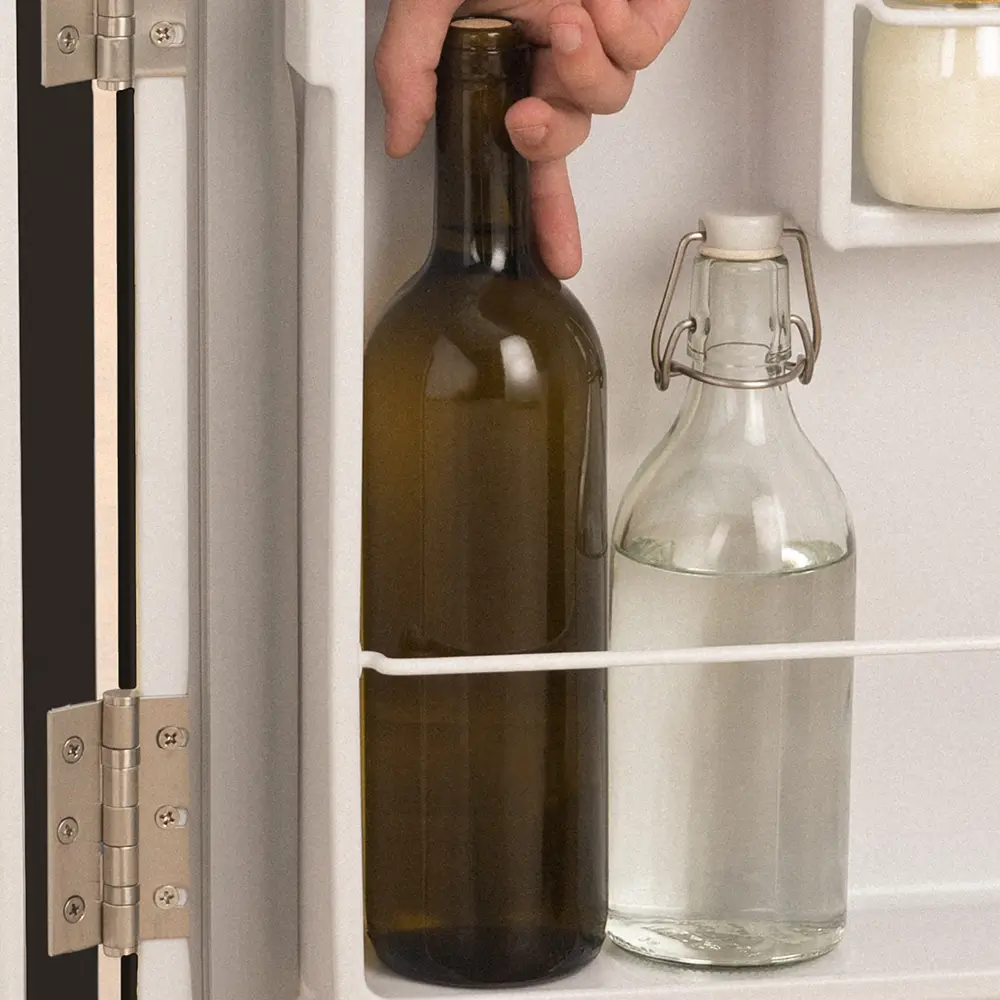 Acest minibar elegant, cu accente mate, are o capacitate de 48 litri si este extrem de silentios, putand fi folosit pentru a pastra la rece atat bauturile, cat si gustarile.