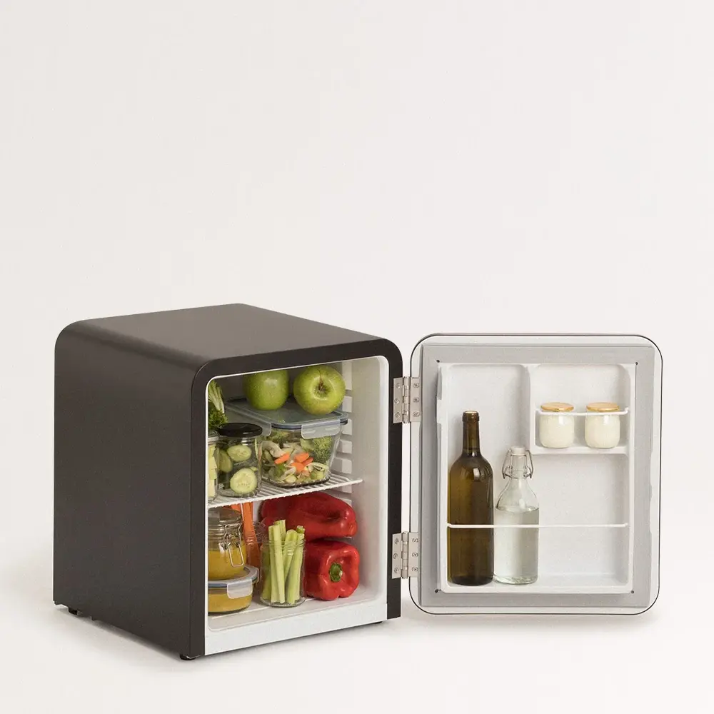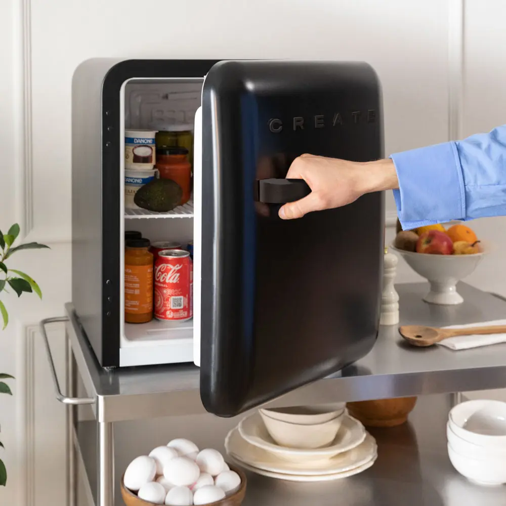 Frigiderul minibar Retro, de la brandul spaniol CREATE, este o bijuterie inspirata din anii `50, proiectata pentru a se potrivi atat in camerele de hotel, restaurant, birou, dar si intr-o casa de vacanta, bucatarie de vara, garaj etc.