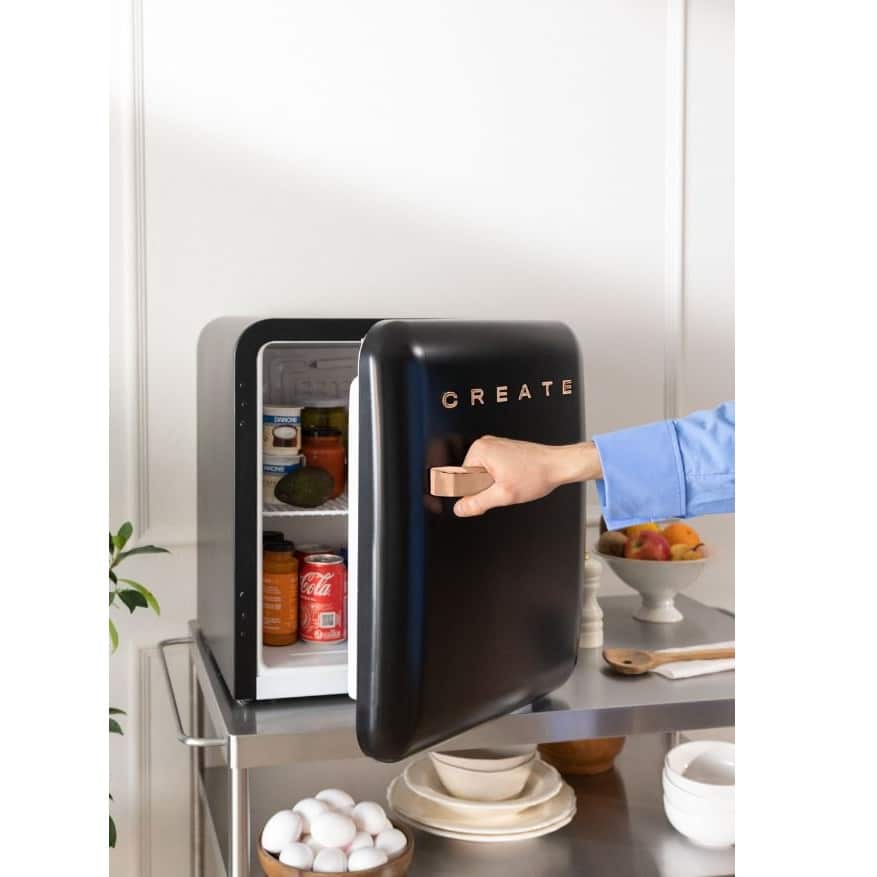Frigiderul minibar Retro, de la brandul spaniol CREATE, este o bijuterie inspirata din anii `50, proiectata pentru a se potrivi atat in camerele de hotel, restaurant, birou, dar si intr-o casa de vacanta, bucatarie de vara, garaj etc.