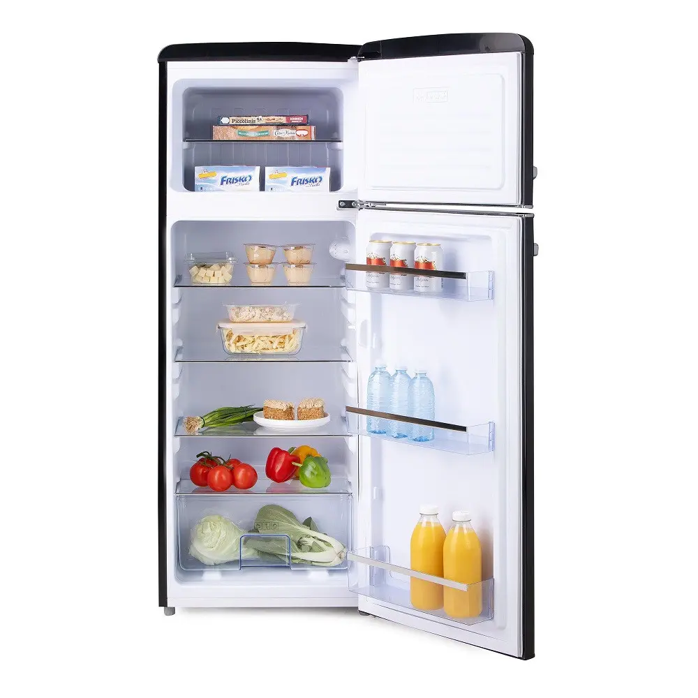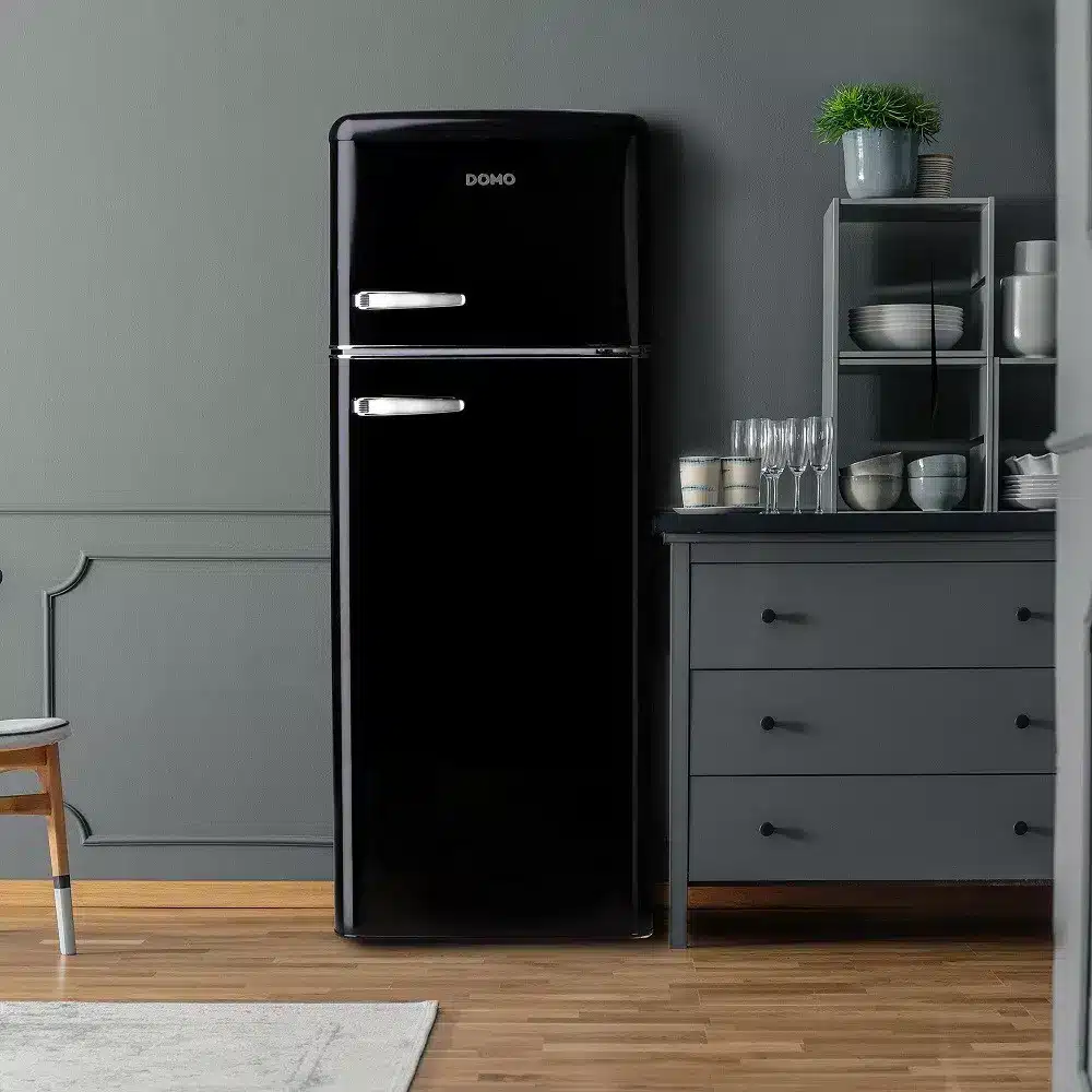 Frigiderul Retro, de la brandul belgian DOMO, iti va eleva bucataria datorita designului inspirat din anii `50, cu detalii cromate si linii rotunjite.