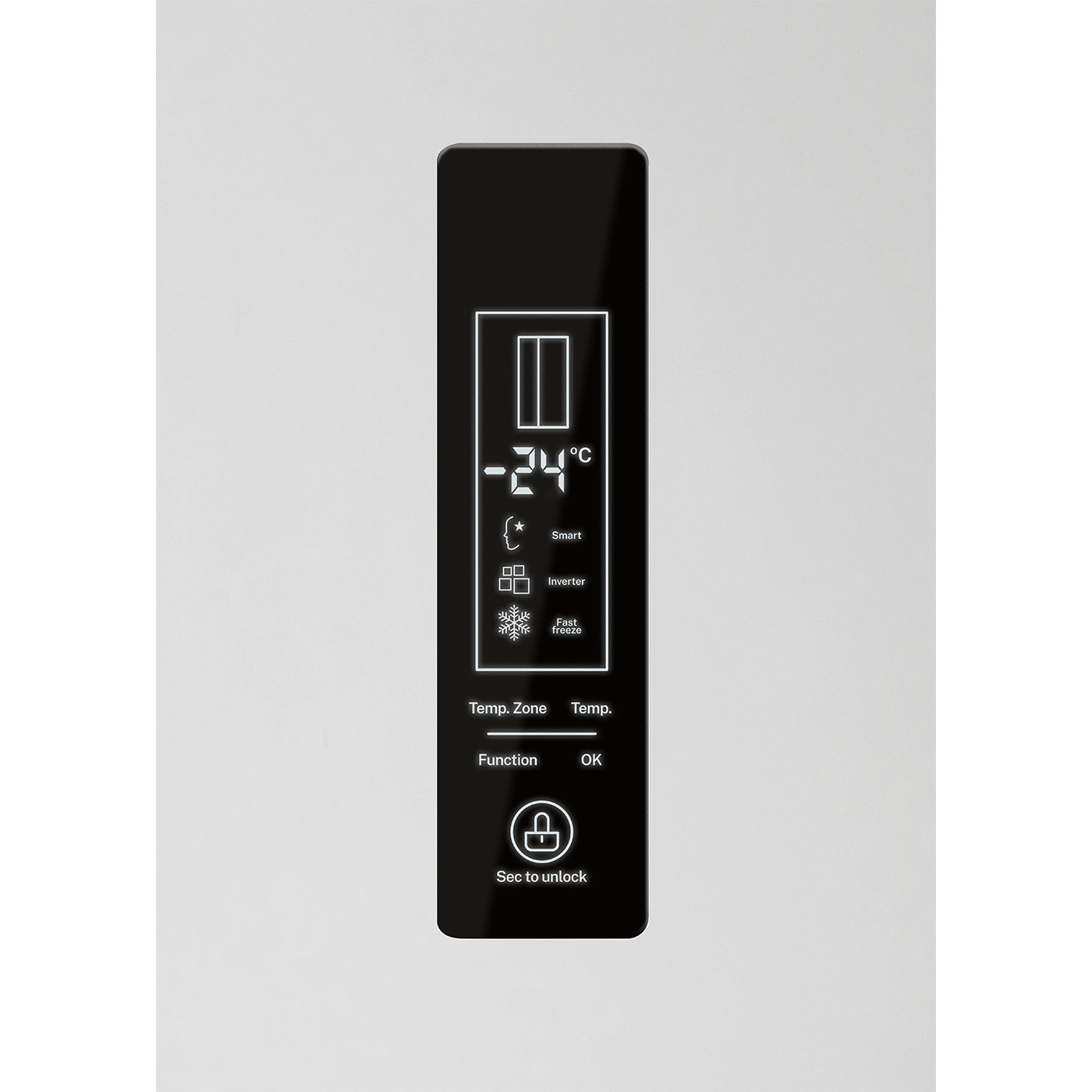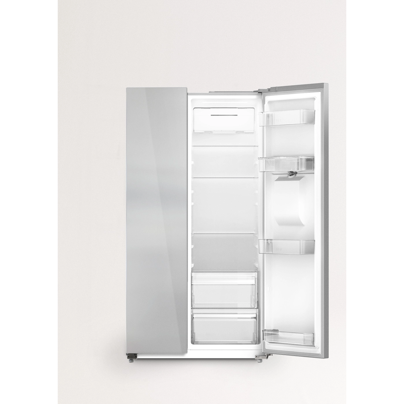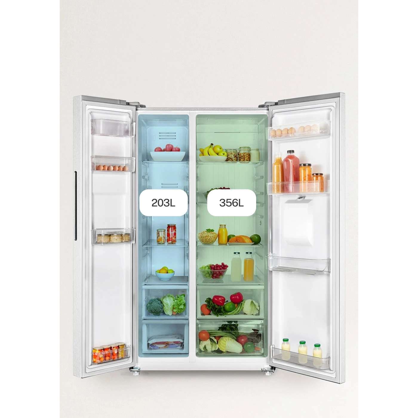 Acest frigider minimalist cu 2 usi are o capacitate de 559 litri, dintre care 203 litri doar pentru congelator, fiind suficienta pentru o familie numeroasa.