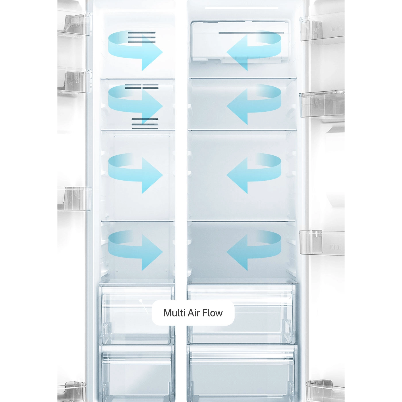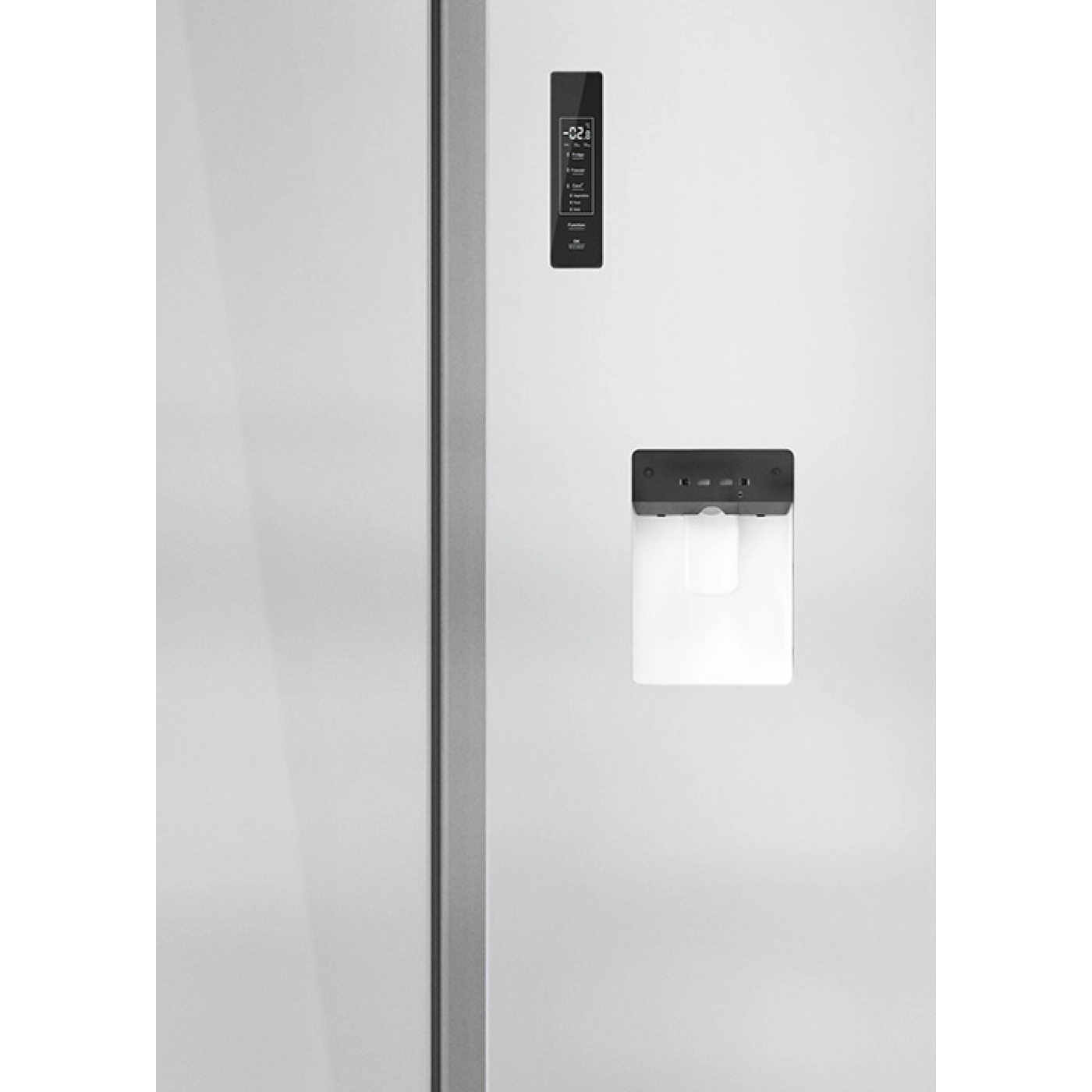 Rafturile din sticla securizata permit depozitarea alimentelor pe 4 niveluri, iar cele 4 compartimente de pe usa pot pastra borcanele si sticlele in siguranta. Mai mult, congelatorul are 4 sertare ce ajuta la o depozitare foarte eficienta. De asemenea, frigiderul este dotat cu un dispenser de apa pentru a te bucura de apa rece oricand doresti!