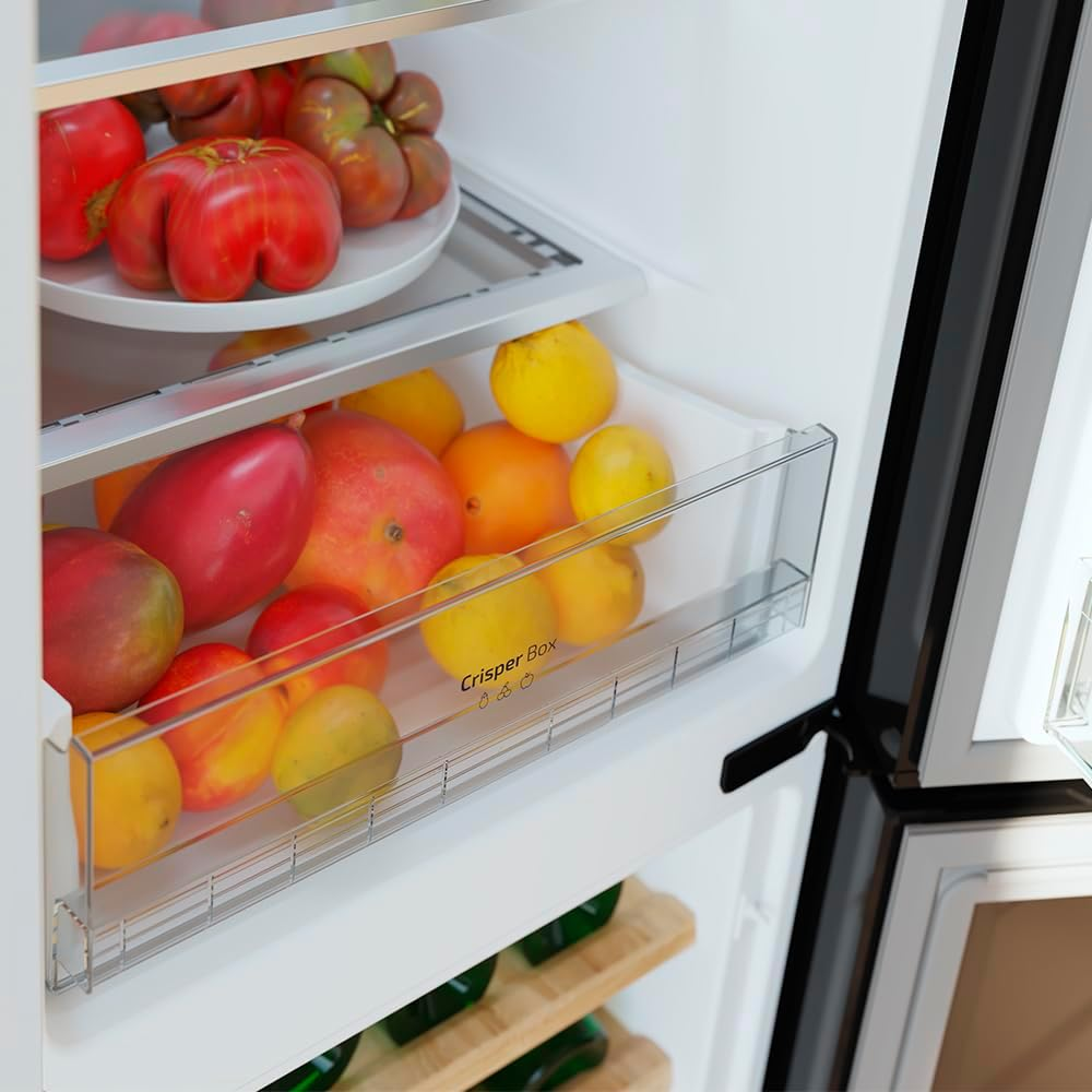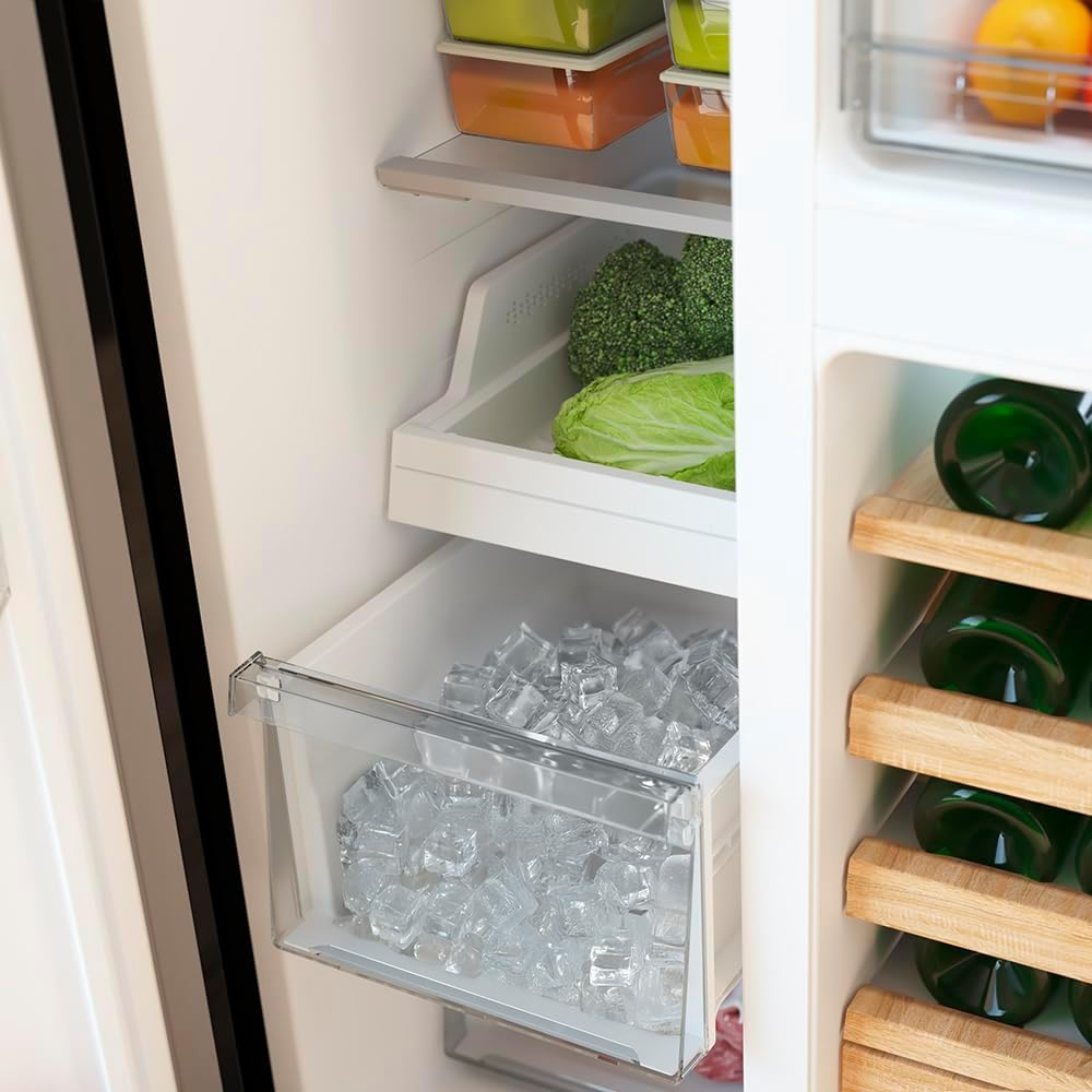 Compartimentarea frigiderului si a congelatorului este eficienta si iti permite sa pastrezi alimentele la temperatura ideala, indiferent de volumul acestora. In plus, congelatorul este dotat cu dispenser pentru apa si cuburi de gheata.