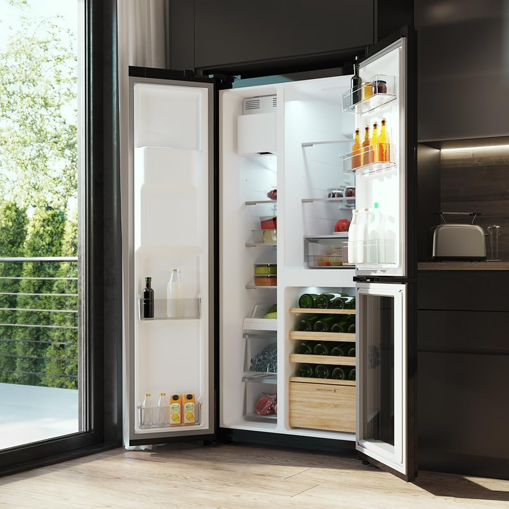 Mai mult, datorita panoului de control intuitiv, poti seta temperatura racitorului conform preferintelor tale. Fie ca preferi vinul rosu, cel alb, sau sarbatoresti cu o sampanie, setarile inteligente ale frigiderului iti pastreaza bauturile la temperatura adecvata.