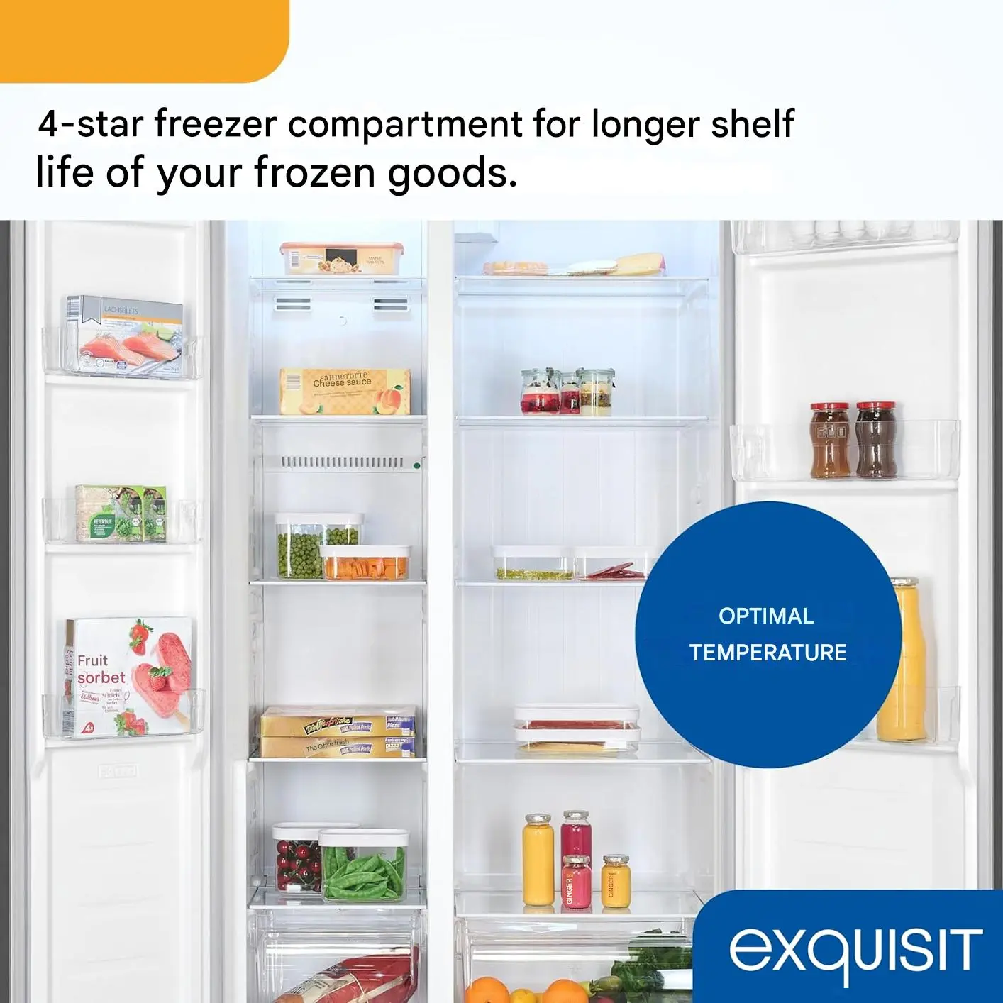 Frigiderul side by side de la producatorul german Exquisit vine cu un design modern si practic, ideal pentru tine si familia ta!
