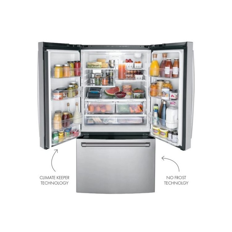Frigiderul French Door Iomabe imbina stilul clasic american cu inovatia moderna, oferind o capacitate generoasa de 533 litri pentru frigider si 232 litri pentru congelator. Sistemul Total No Frost asigura o racire uniforma si previne formarea ghetii, mentinand alimentele proaspete mai mult timp.