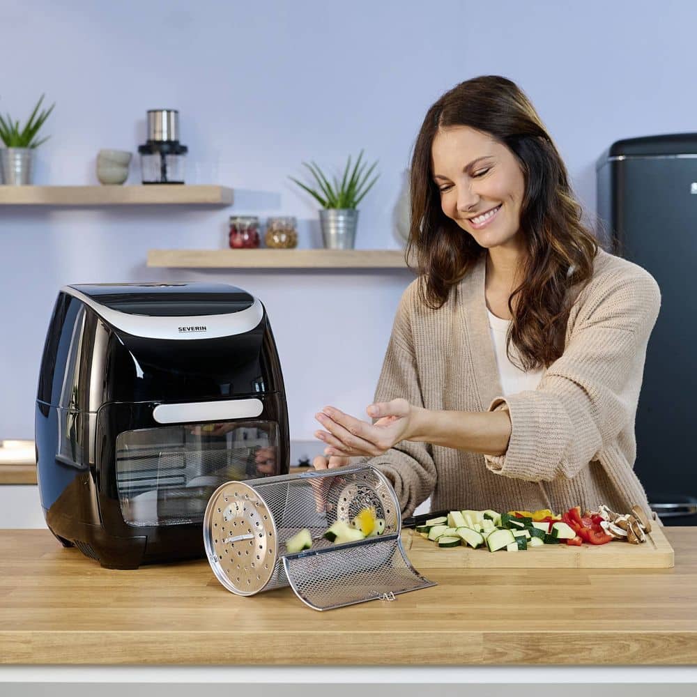Descoperiti o modalitate inovatoare de a gati mancaruri delicioase si sanatoase cu Friteuza cu aer cald de la brandul Severin. Aceasta friteuza moderna este potrivita pentru prajit, gatit la abur, rumenire si coacerea produselor de patiserie, oferindu-va posibilitatea de a prepara o varietate de mancaruri savuroase intr-un mod sanatos si gustos.