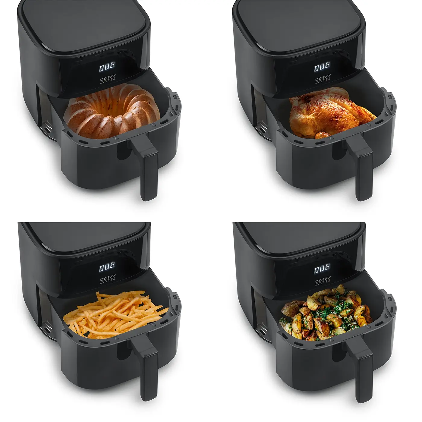 Friteuza AirFryer, de la brandul german Caso Germany, iti pune la dispozitie o alternativa mai sanatoasa de a gati mancarurile tale preferate, fara nici un pic de ulei sau grasimi adaugate. Aparatul pregateste mancarea cu ajutorul aerului cald, in mod rapid si economisind energie, astfel ca te vei bucura de preparate sanatoase si un consum redus.