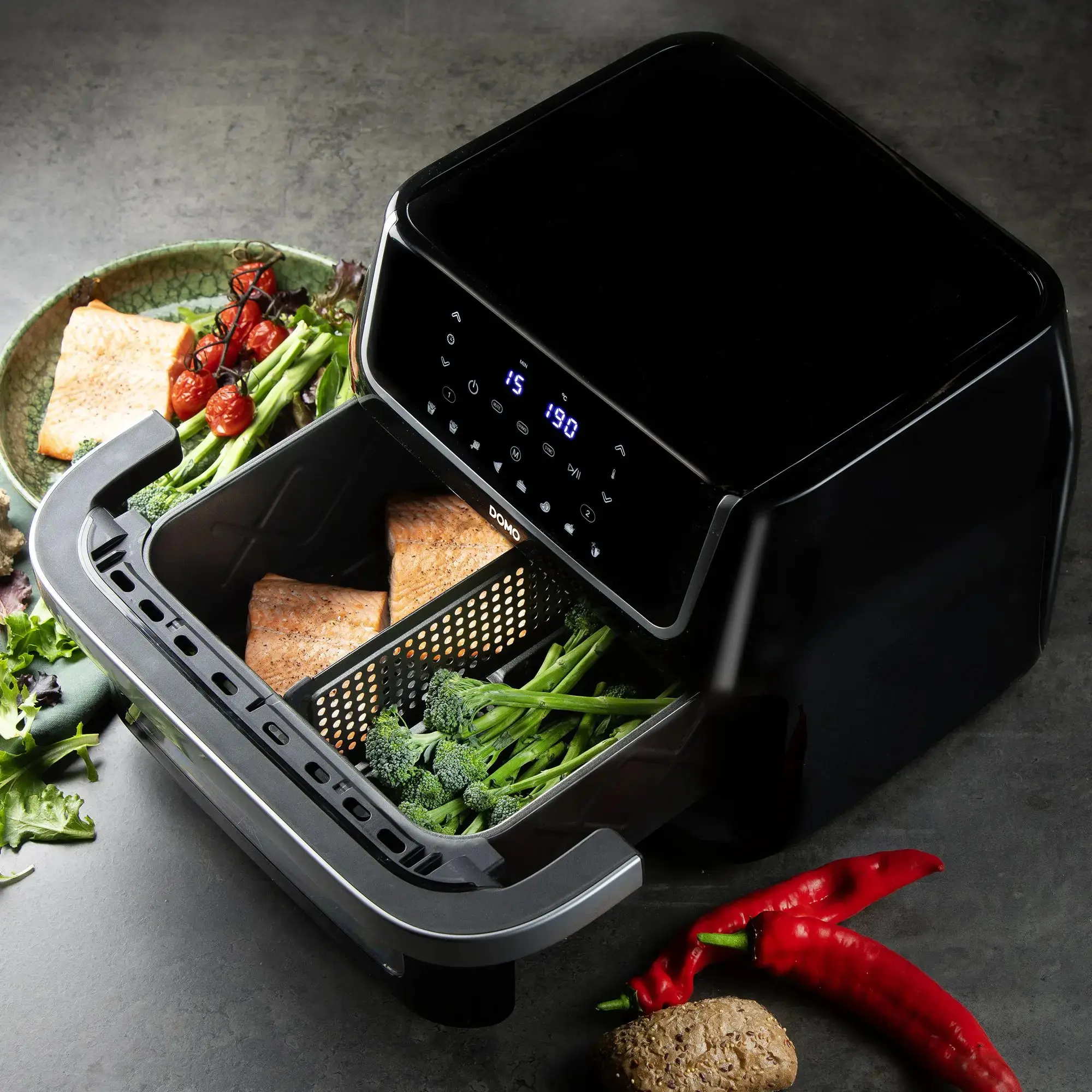 Gatirea alimentelor intr-un mod sanatos a devenit preocuparea tuturor, iar DOMO vine in ajutorul tau cu friteuza sa cu aer cald XXL!