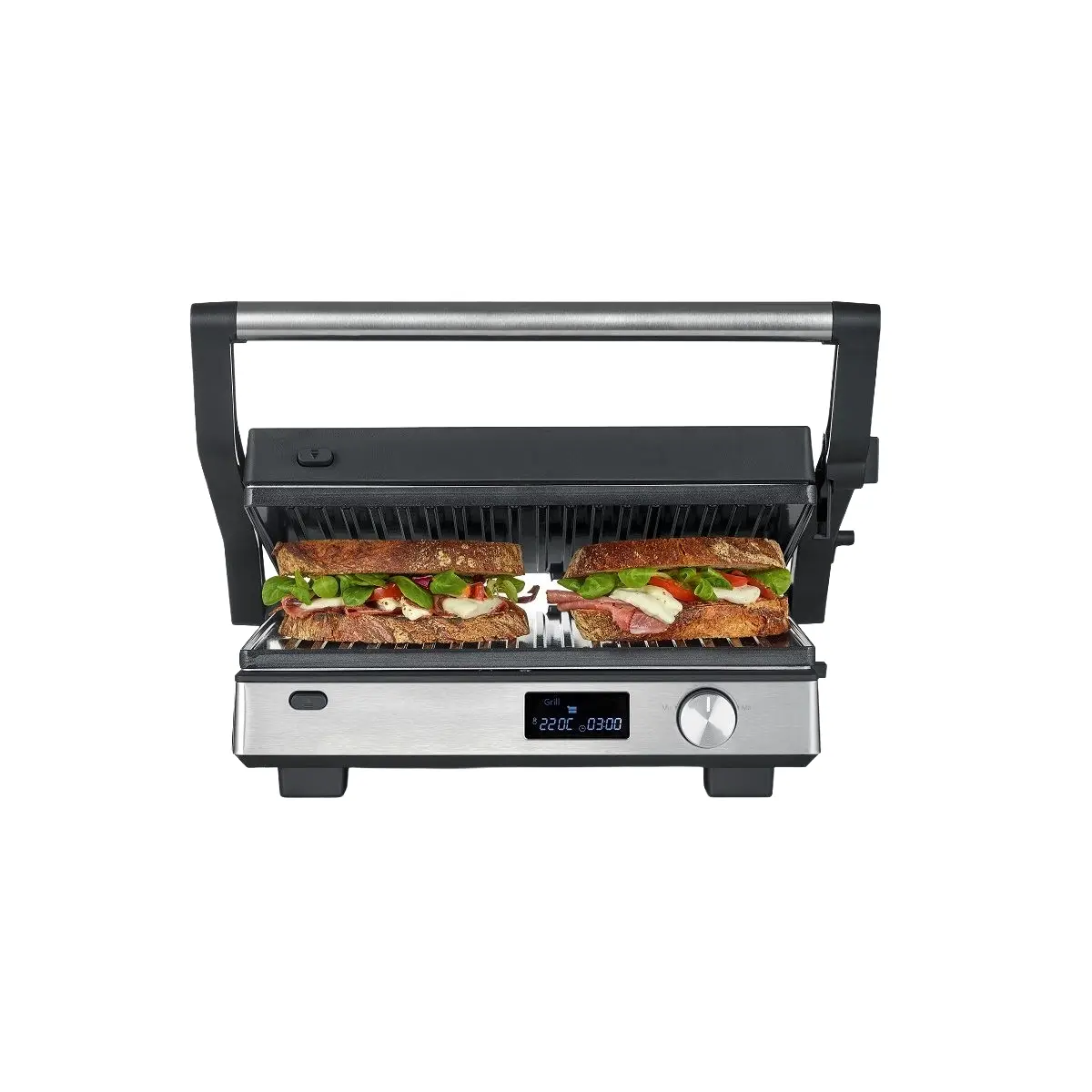 Pentru a-ti personaliza experienta in bucatarie, placile sunt interschimbabile, astfel ca poti rumeni carnea pe placa grill, in timp ce sotezi legumele pe placa teppanyaki. In plus, gratarul electric dispune de termostat si comutator de rumenire, asa ca ai libertatea culinara de a prepara orice fel de mancare: de la carne frageda, la legume, la vafe dulci sau sarate.