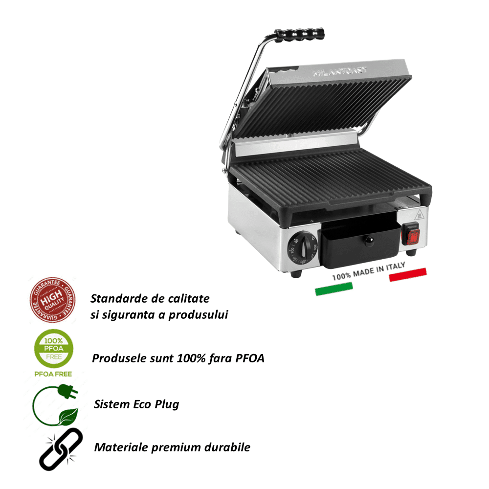 Unul dintre cele mai versatile electrocasnice este grillul electric, datorita multiplelor avantaje de utilizare. MILANTOAST ofera o gama profesionala de contact grill-uri rezistente si utile in bucataria oricui.