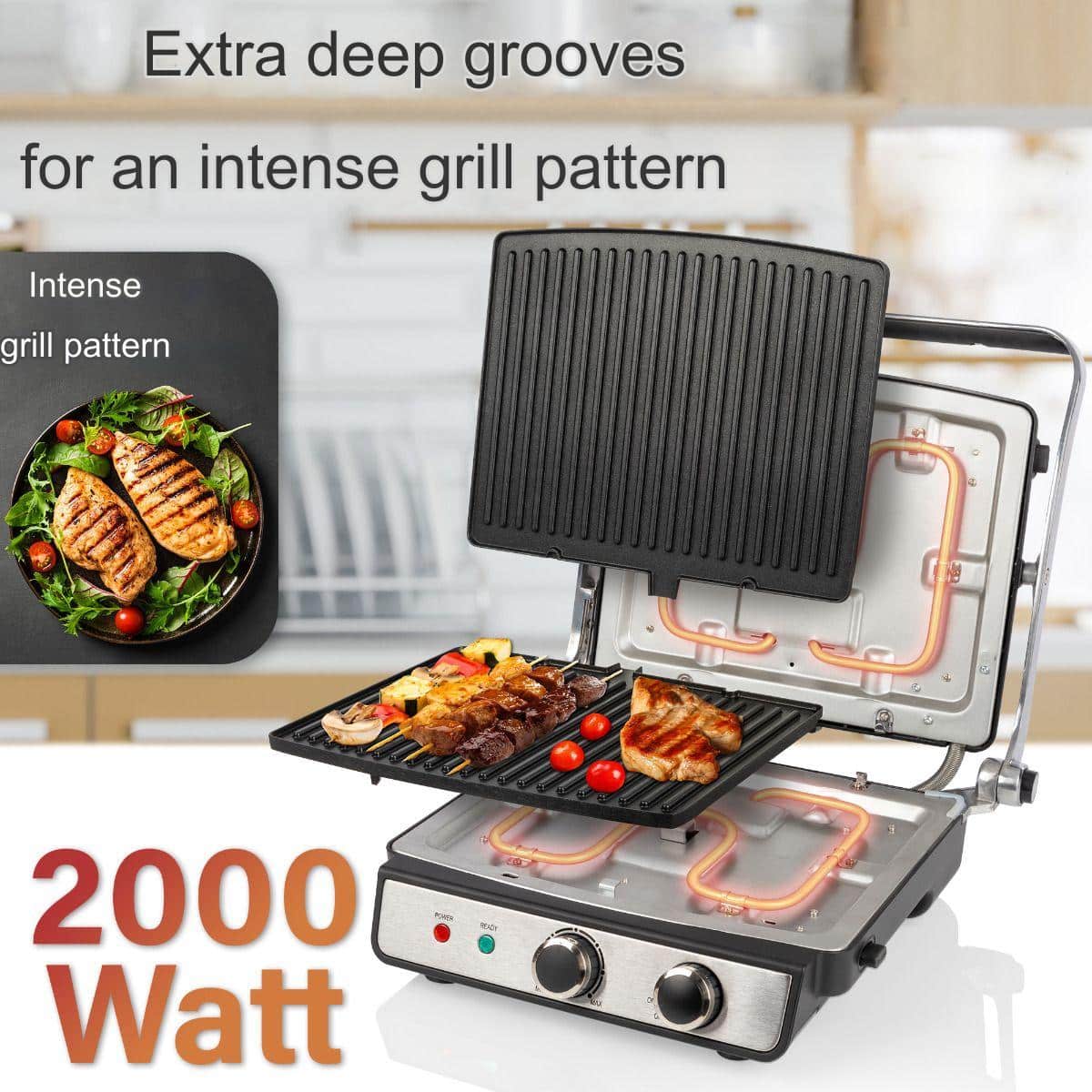 Cu contact grill-ul electric poti gati friptura, peste, burgeri, dar si sandwich-uri, panini si multe altele.