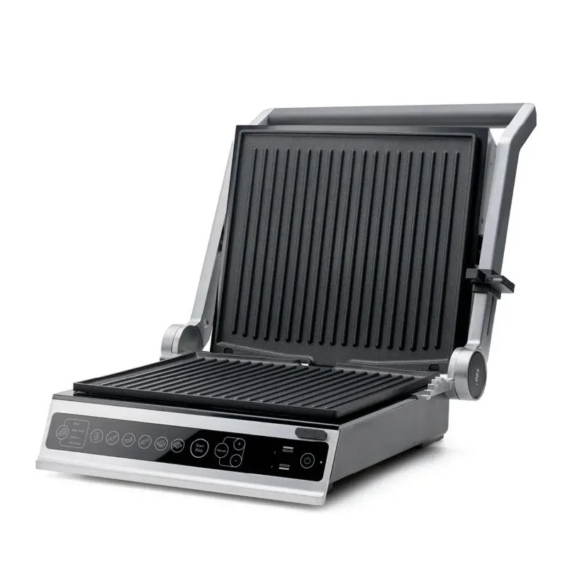 Suplimentar, contact grillul poate fi deschis si folosit ca gratar de masa atunci cand ai invitati astfel, poti pregati o cantitate mai mare de mancare.