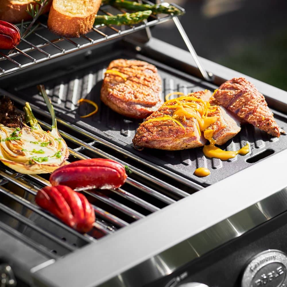 Suprafata de gratar principala, de 40×33.5 cm, este din otel inoxidabil usor de intretinut. Gratarul este compus din doua parti pentru a putea folosi si alte accesorii sau modalitati de gatire.