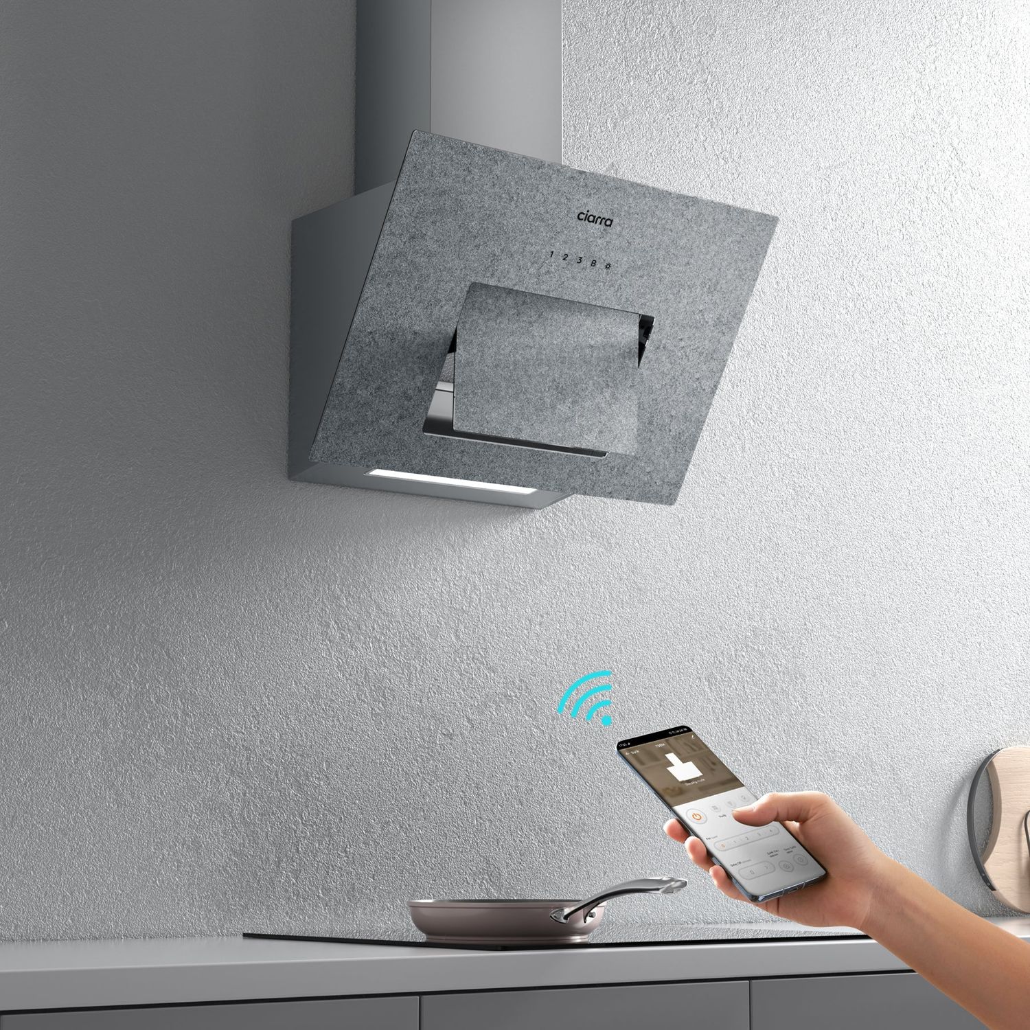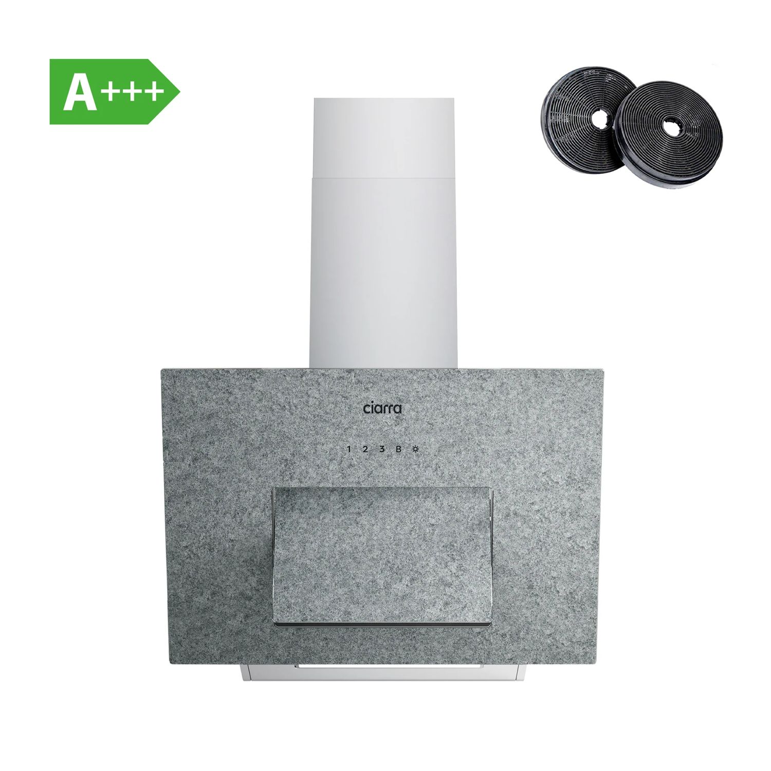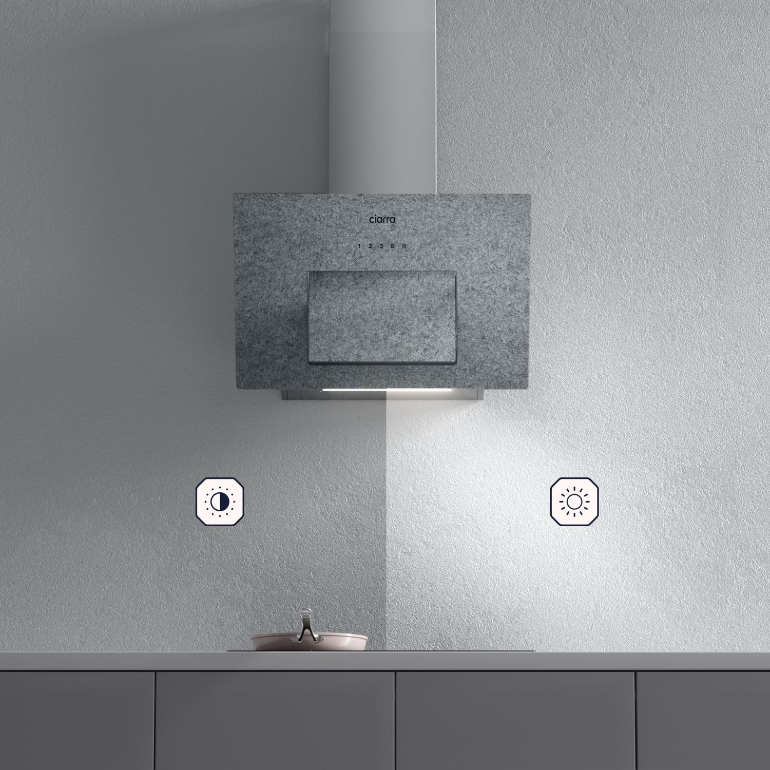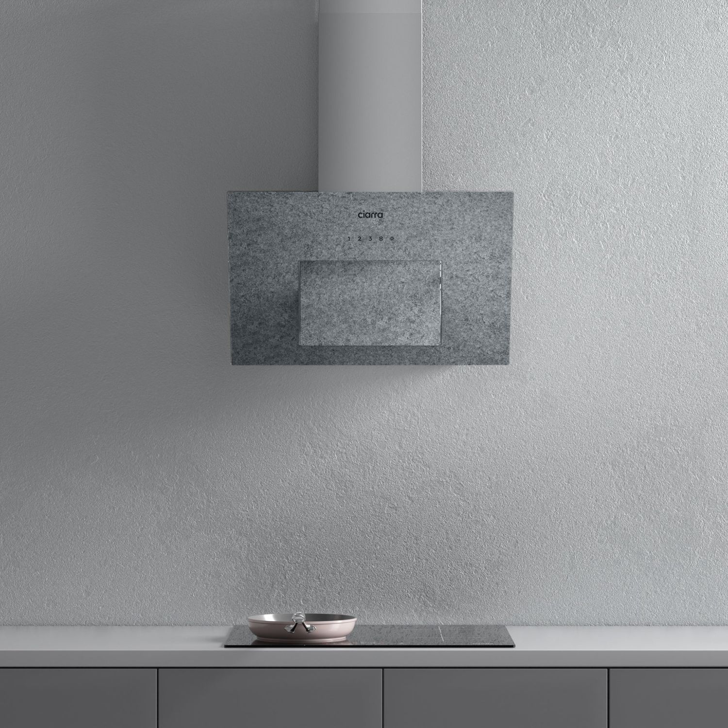 Hota de la Ciarra are un design elegant potrivit pentru orice bucatarie, carcasa frontala din sticla cu aspect de otel periat este atractia acesteia datorita modului de actionare prin senzor touch. Aceasta va deveni piesa de rezistenta in orice bucatarie, datorita culorii argintii si al aspectului simplist si totodata elegant.