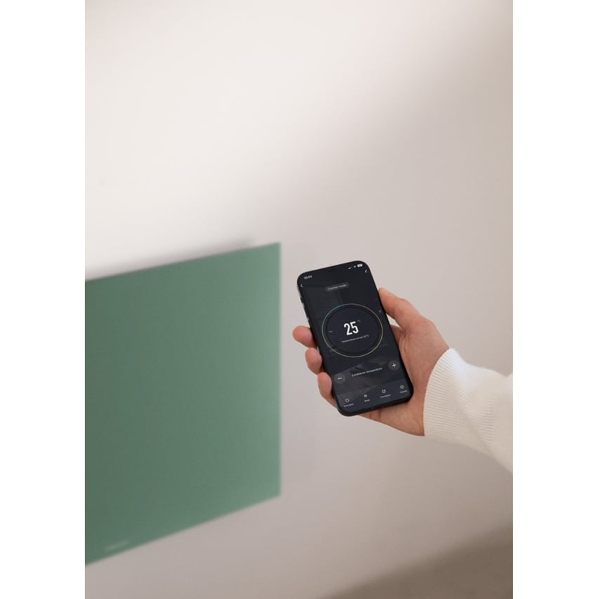 Incalzitorul electric poate fi conectat la smartphone-ul tau cu ajutorul aplicatiei, astfel ca il poti porni si seta temperatura de oriunde din casa.