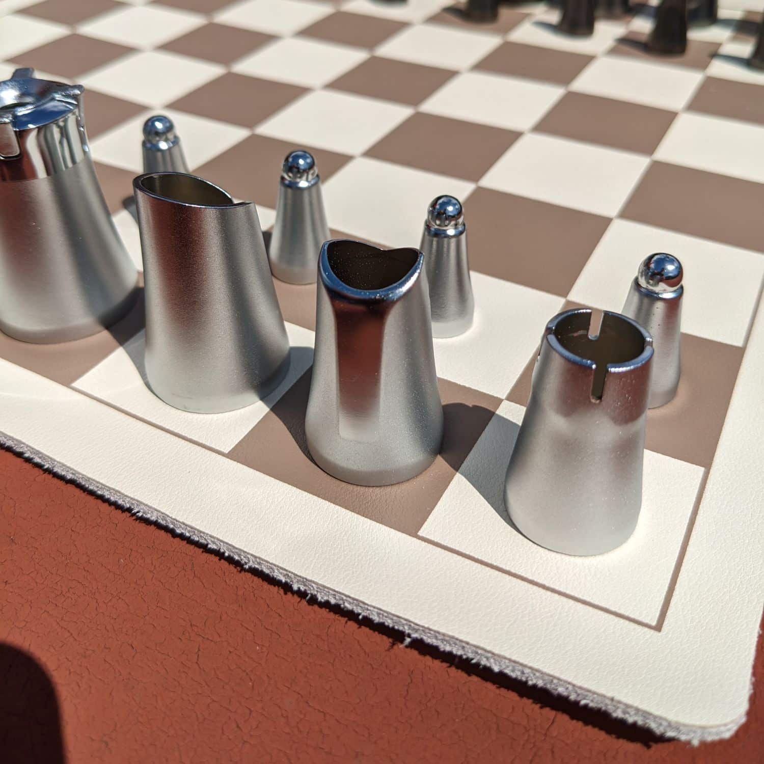Acest set are piese de sah cu un design unic, care se cuibaresc magnetic una in cealalta, asigurand o depozitare compacta care aminteste de papusile Matryoshka. Tabla de sah poate fi rulata fara efort!