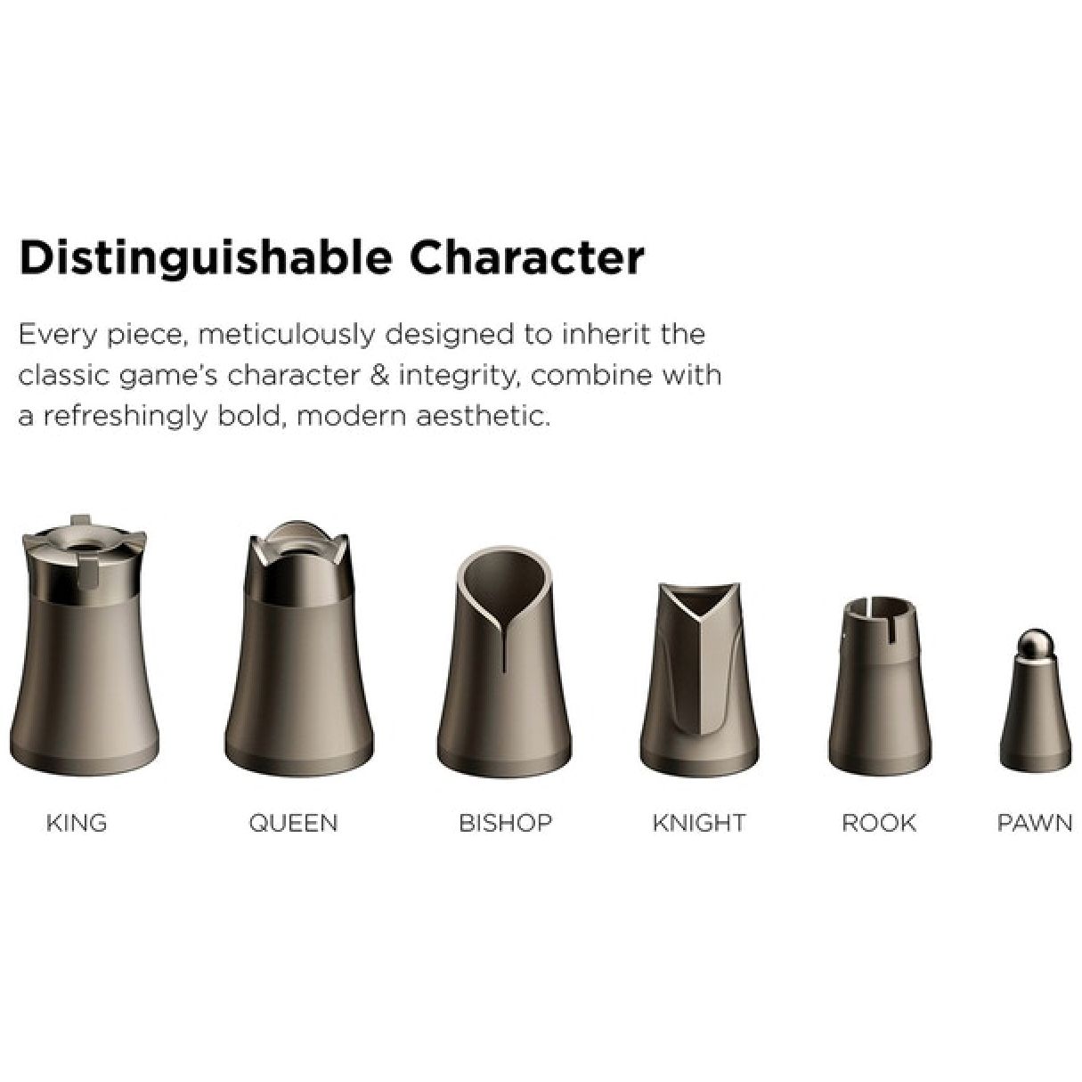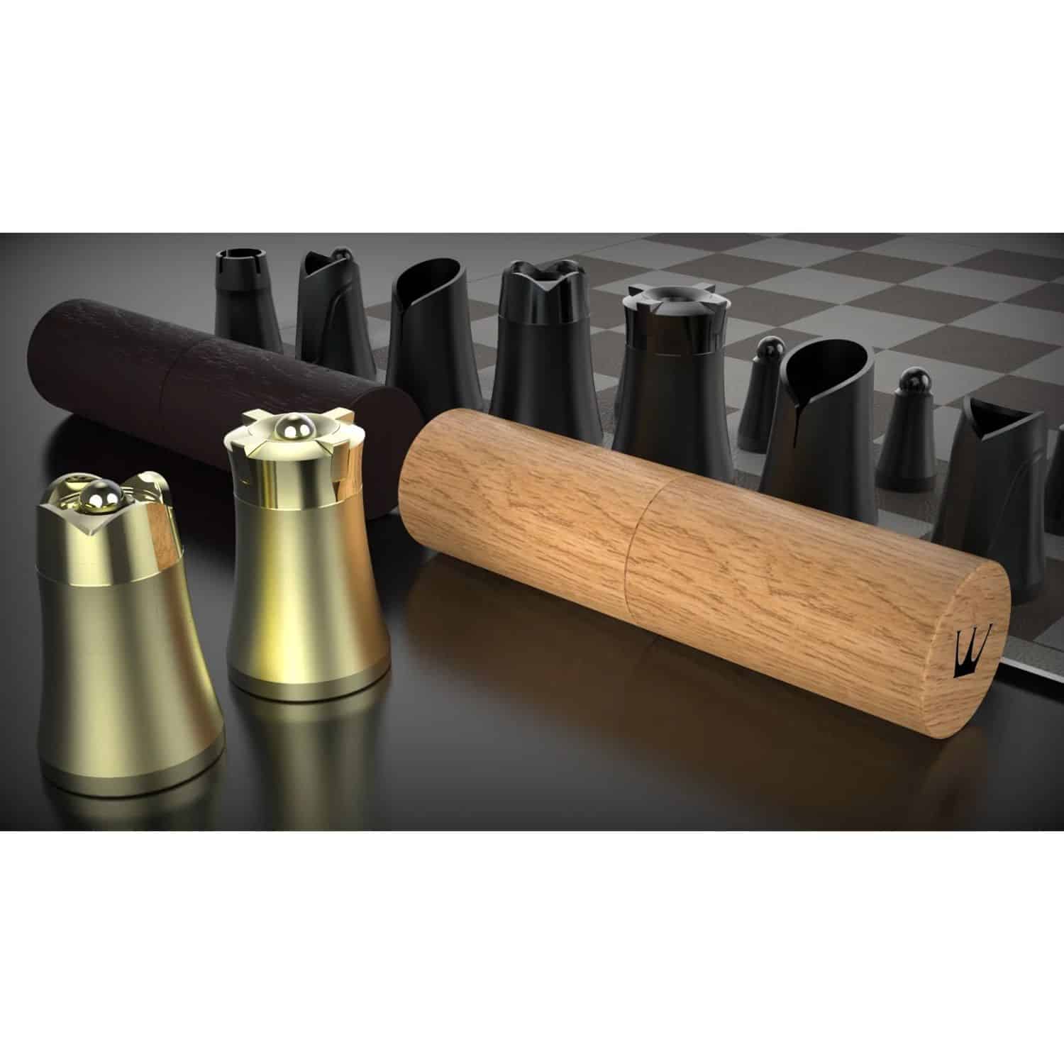 Acest set are piese de sah cu un design unic, care se cuibaresc magnetic una in cealalta, asigurand o depozitare compacta care aminteste de papusile Matryoshka. Tabla de sah poate fi rulata fara efort!