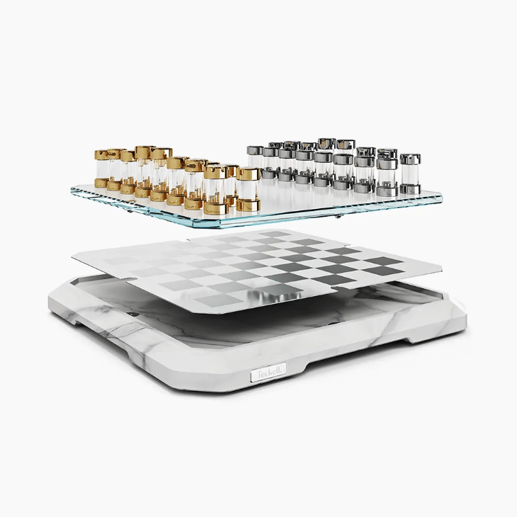 Jocul de sah de la brandul italienesc Teckell reprezinta o veritabila capodopera a rafinamentului si luxului. Tabla sa este realizata din marmura Marquina, care confera o infatisare distinsa, si sticla prelucrata cu atentie pentru a asigura durabilitatea si stralucirea de lunga durata.