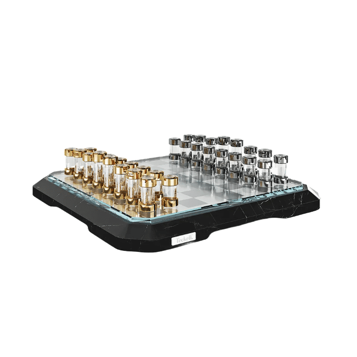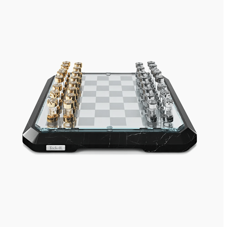 Jocul de sah de la brandul italienesc Teckell reprezinta o veritabila capodopera a rafinamentului si luxului. Tabla sa este realizata din marmura Marquina, care confera o infatisare distinsa, si sticla prelucrata cu atentie pentru a asigura durabilitatea si stralucirea de lunga durata.