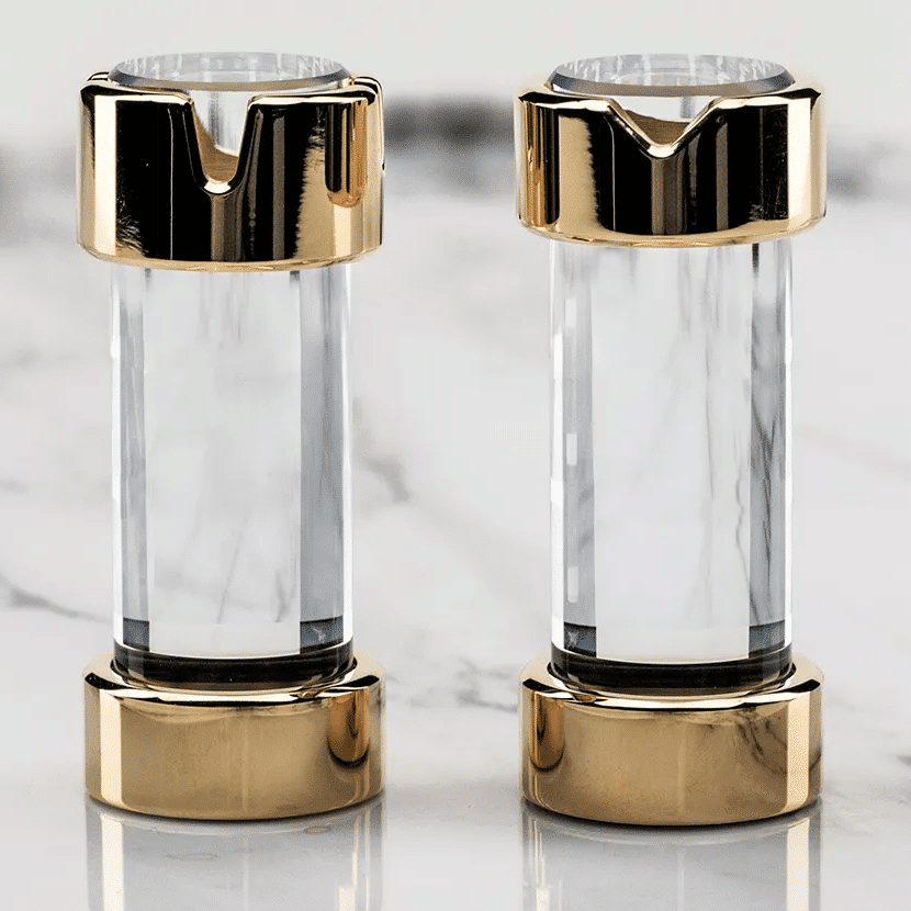 Material piese: sticla borosilicata extra-clara, aur de 24K, alama cromata