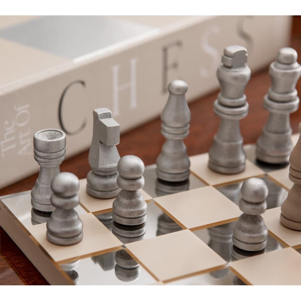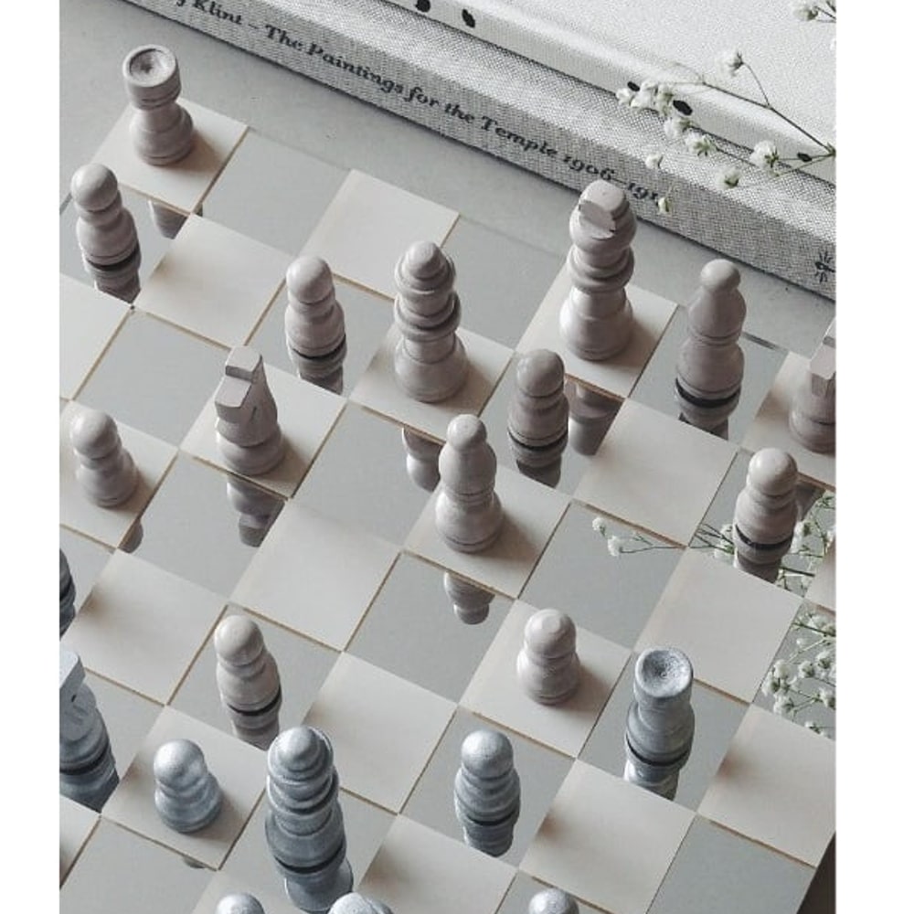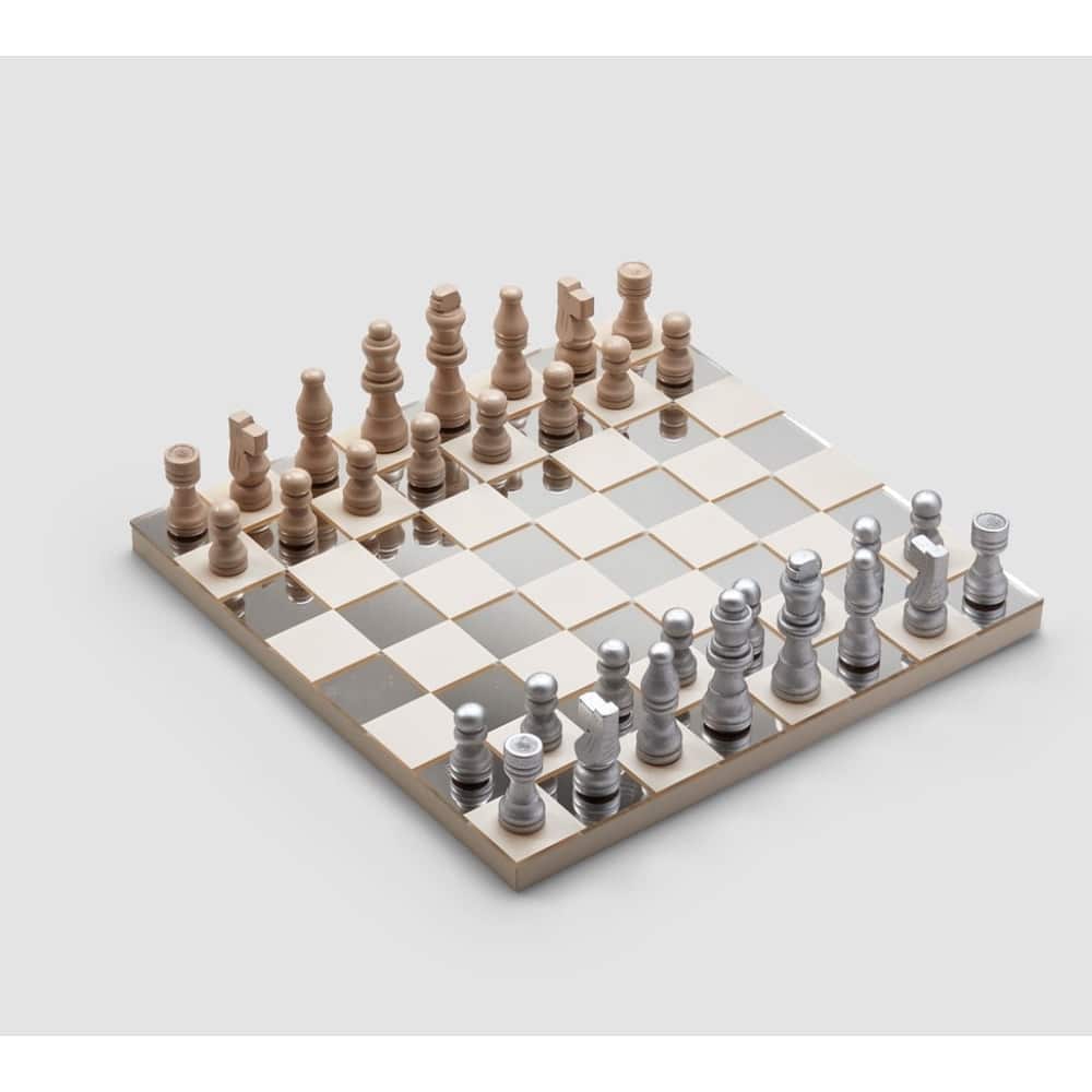 Jocul de sah Mirror are un design spectaculos cu insertii de oglinda. Piesele si tabla de joc sunt fabricate din lemn iar pe suprafata tablei este montat un strat subtire de oglinda acrilica, oferind jocului o eleganta aparte.