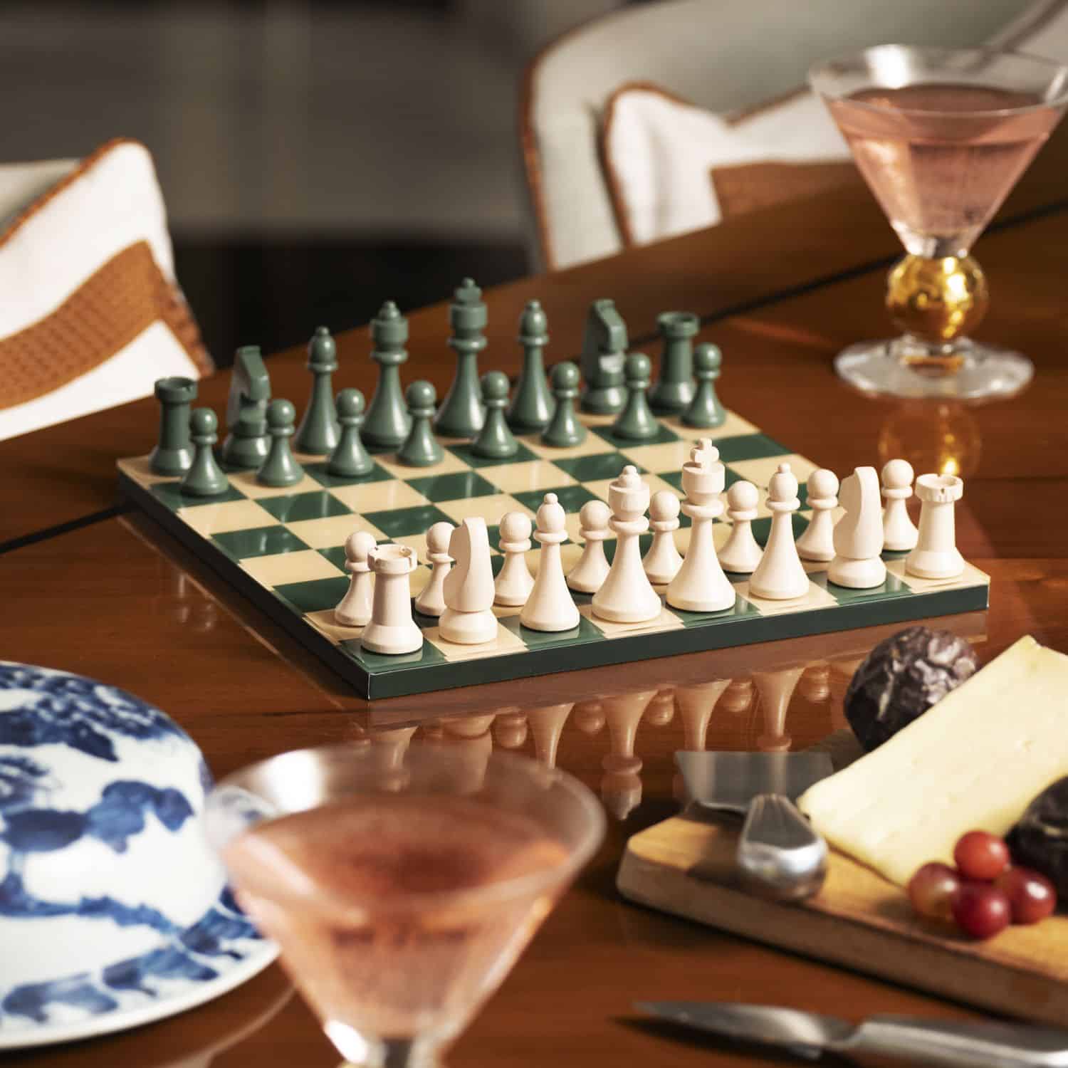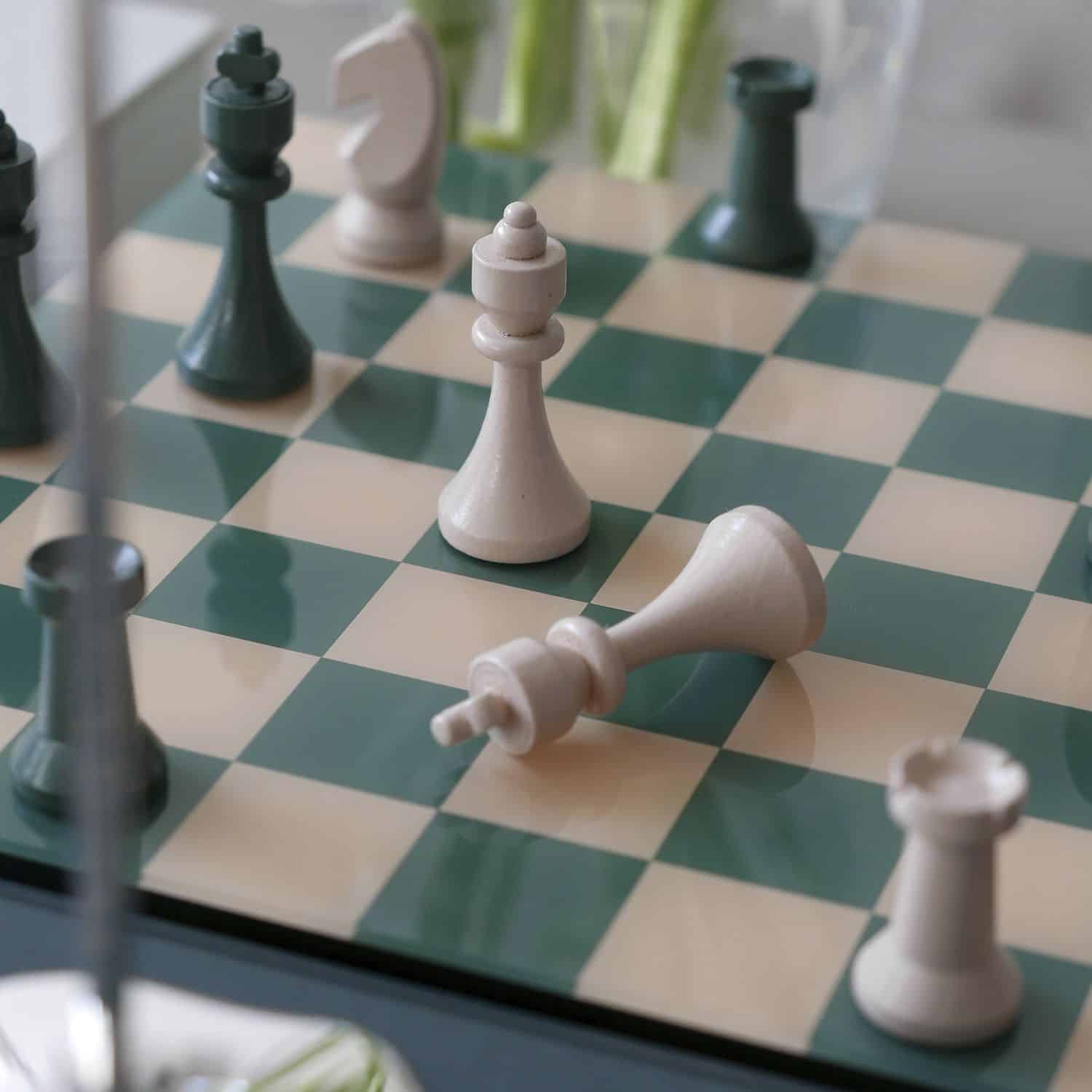 Jocul de sah Classic are un design atemporal, verde-lemn natur. Piesele sunt fabricate din lemn iar tabla de joc din acrilic, oferind jocului o eleganta aparte.