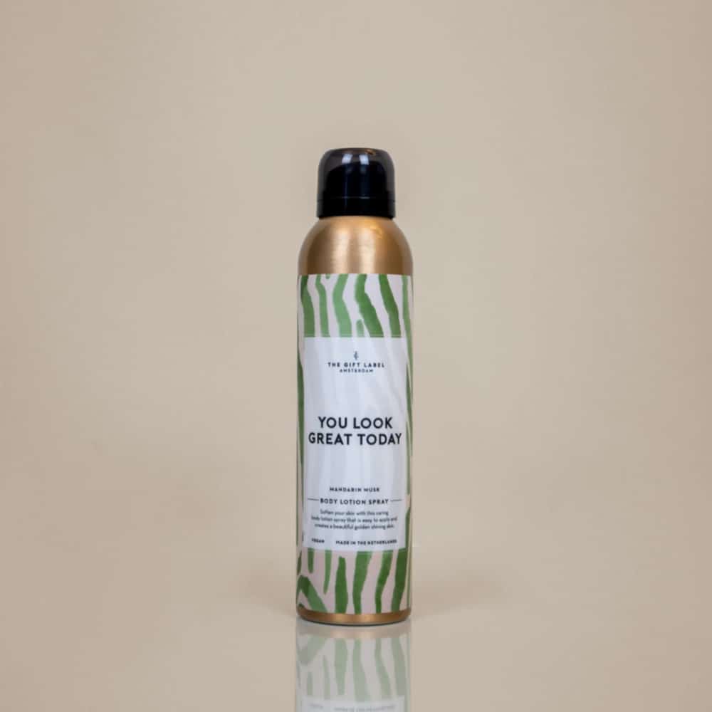 Rasfata-ti pielea cu lotiunea de corp tip spray de la brandul olandez The Gift Label! Lotiunea de corp You Look Great Today iti va transforma ritualul de ingrijire a pielii intr-o experienta SPA la tine acasa, care iti va trezi simturile si te va face sa evadezi din ritmul agitat al vietii cotidiene.