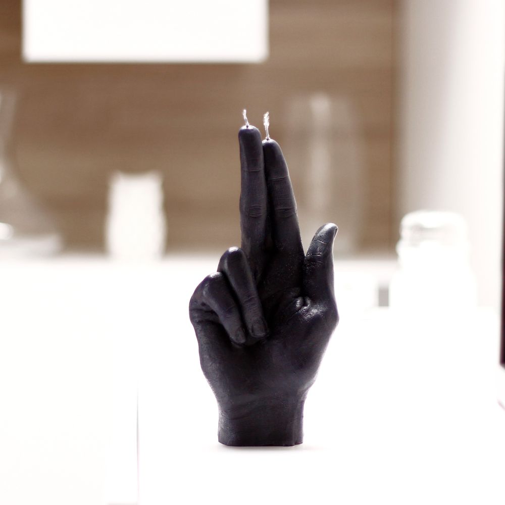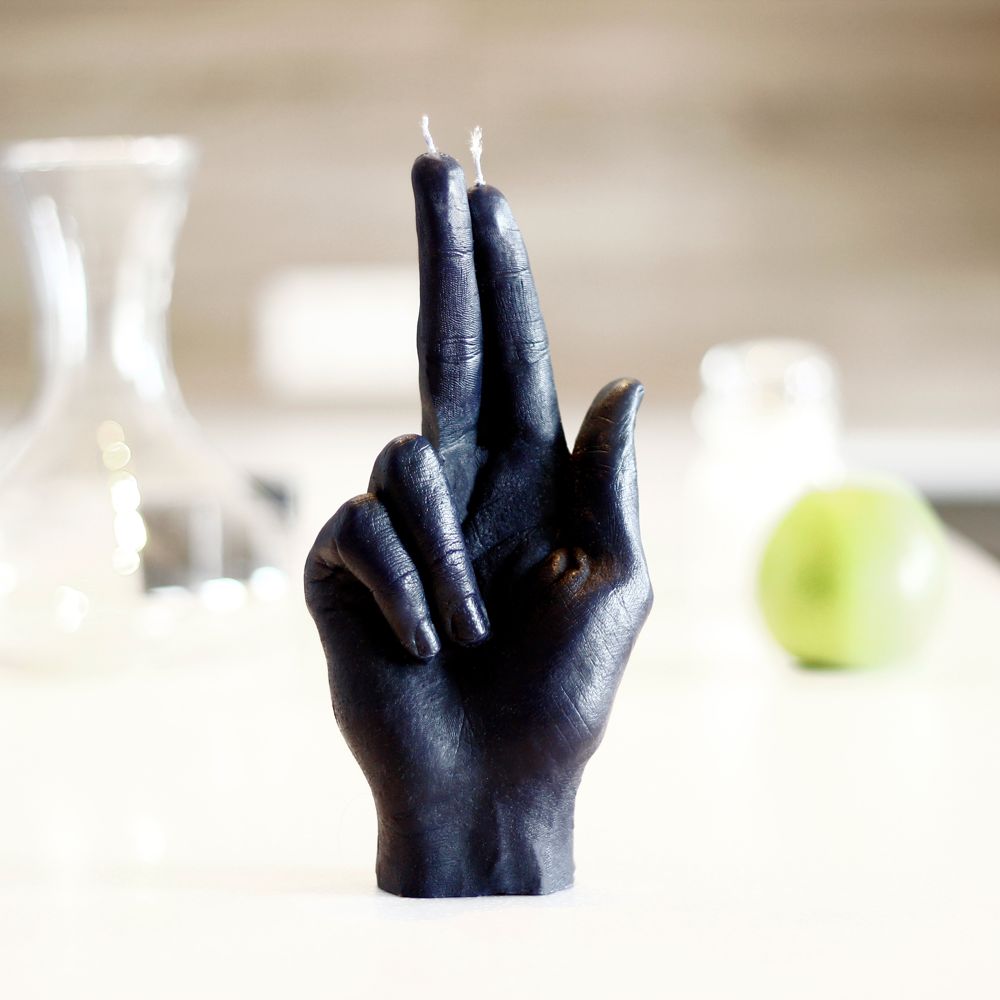 Fiecare lumanare este fabricata manual si este ambalata intr-o cutie cool, perfecta pentru cadou. Rasfata-te cu un cadou amuzant, ofera-l cuiva drag (sau nu) si exprima-ti starea de spirit cu aceasta decoratiune. Datorita designului sau unic, lumanarea Gun Fingers va deveni cu siguranta piesa de rezistenta din orice incapere.