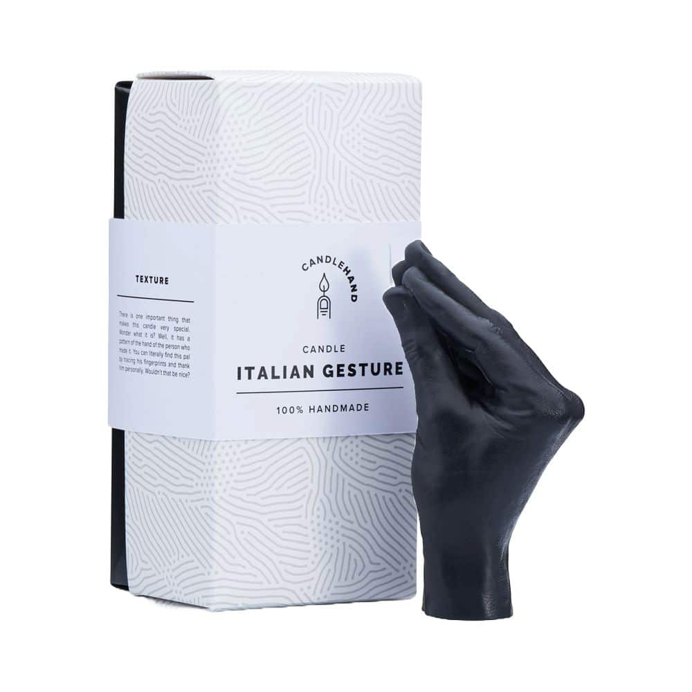 Fiecare lumanare este fabricata manual si este ambalata intr-o cutie cool, perfecta pentru cadou. Rasfata-te cu un cadou amuzant, ofera-l cuiva drag (sau nu) si exprima-ti starea de spirit cu aceasta decoratiune. Datorita designului sau unic, lumanarea Italian Gesture va deveni cu siguranta piesa de rezistenta din orice incapere.