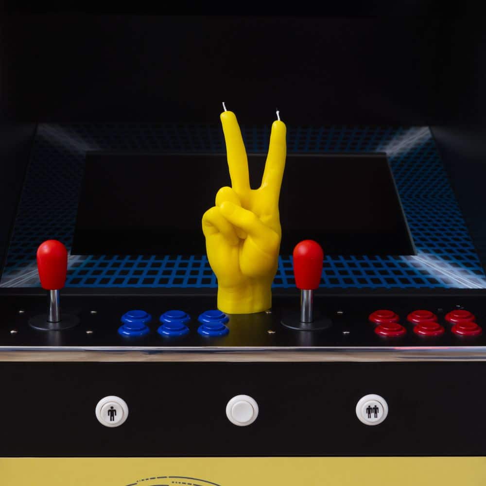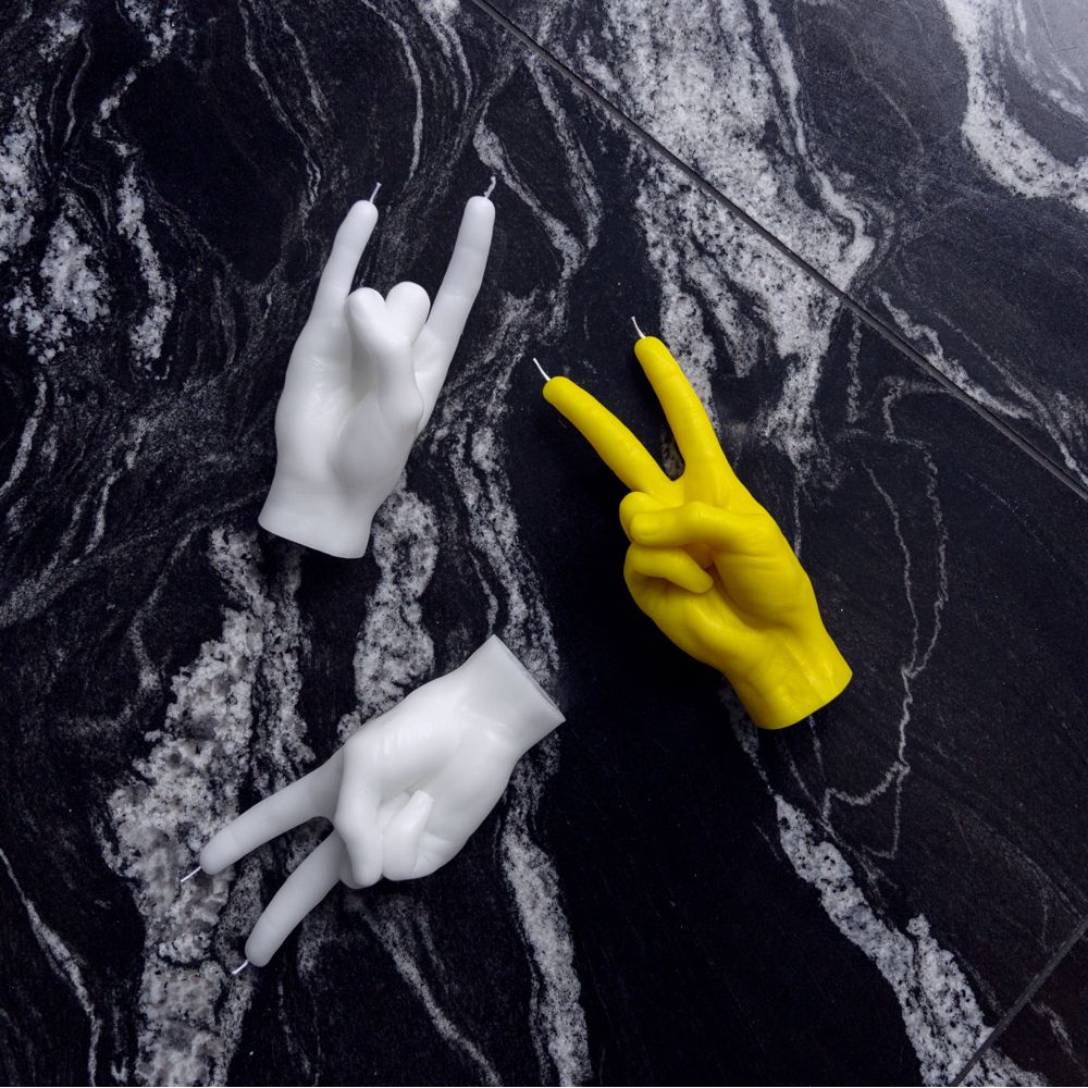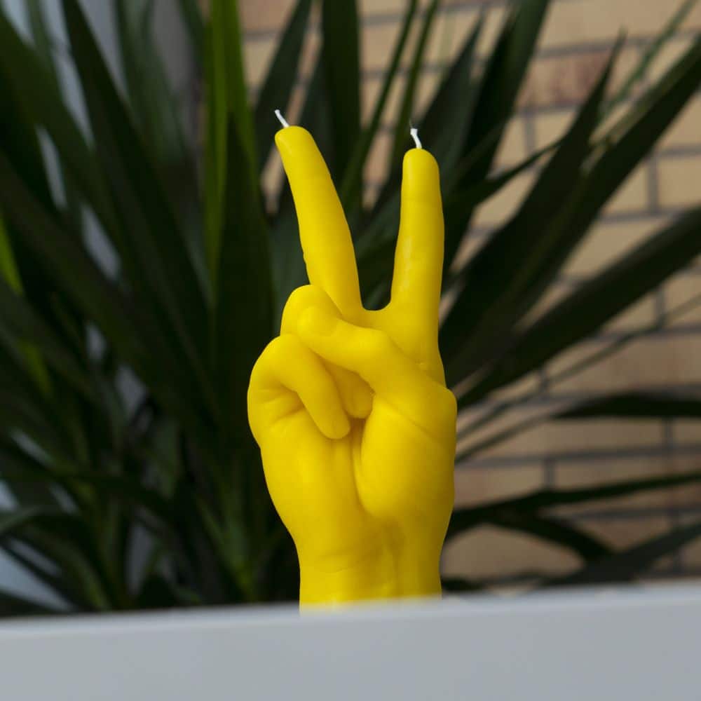 Aceasta lumanare exprima unul dintre cele mai cunoscute gesturi din intreaga lume, de obicei folosit de invingatori sau pacifisti.