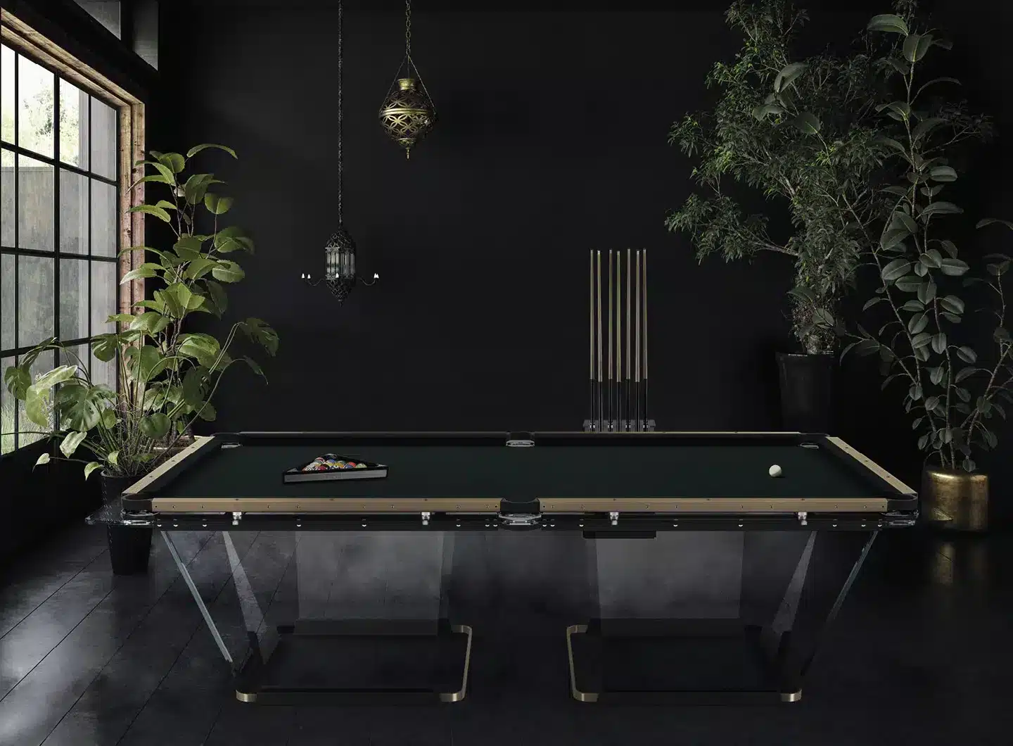 Masa de biliard luxury, de la brandul italienesc Teckell, impresioneaza prin designul minimalist si materialele atent selectionate, fiind nu doar o masa de joc ci si o piesa de mobilier eleganta, emanand rafinament si stil.