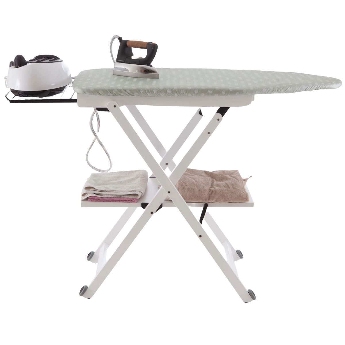 Cu un design practic si ideal pentru depozitare eficienta, masa de calcat dispune si de un raft pentru depozitarea hainelor ce urmeaza sa fie calcate.