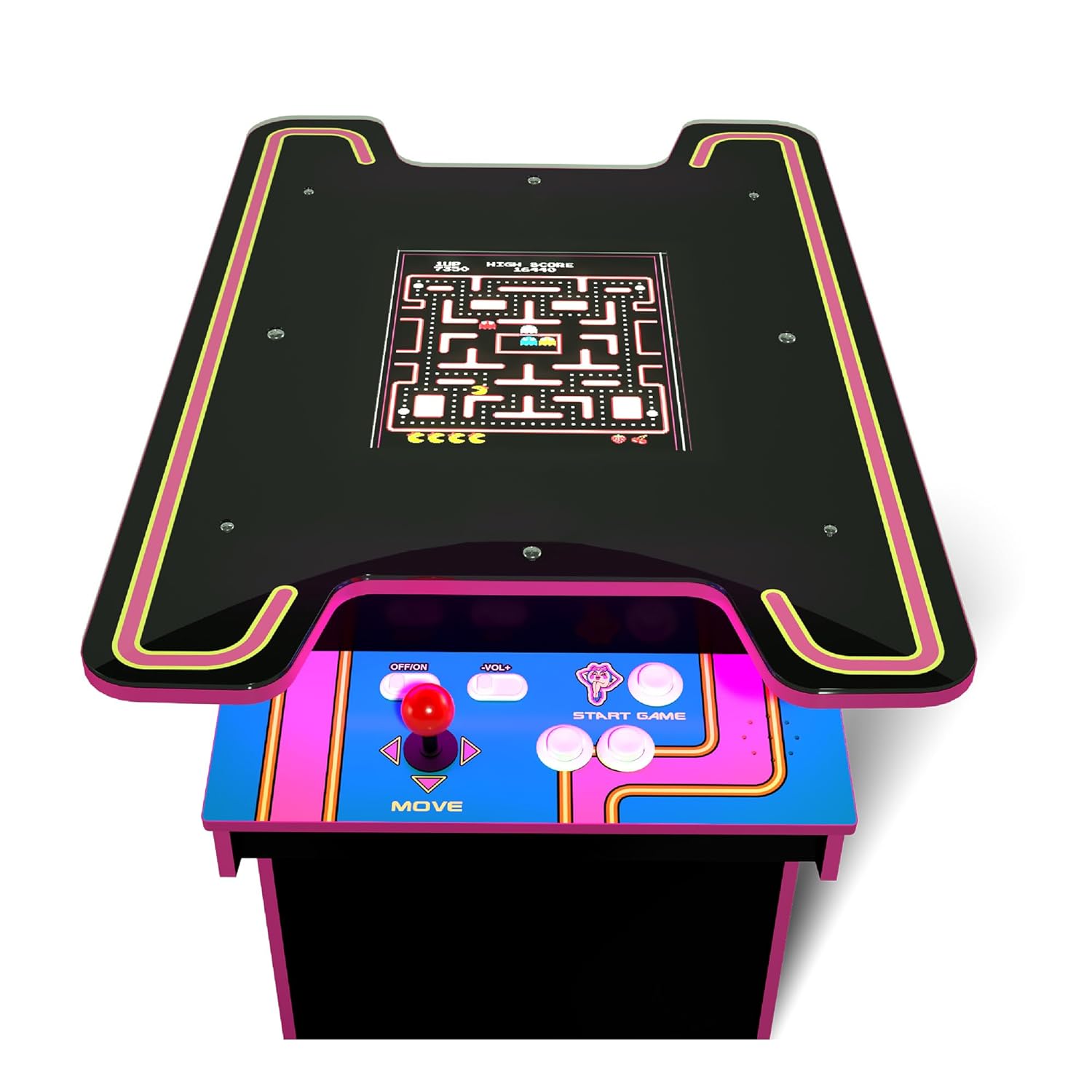 Cunoscute pentru producerea unor experiente autentice de arcade, consolele retro Arcade1Up sunt must-have pentru game rooms sau ca o distractie binevenita in birou. Printre cele mai cerute titluri retro de jocuri pentru Arcade1Up, Ms. Pac-Man Head-to-Head Arcade Table va deveni o piesa de rezistenta in orice colectie de arcade!