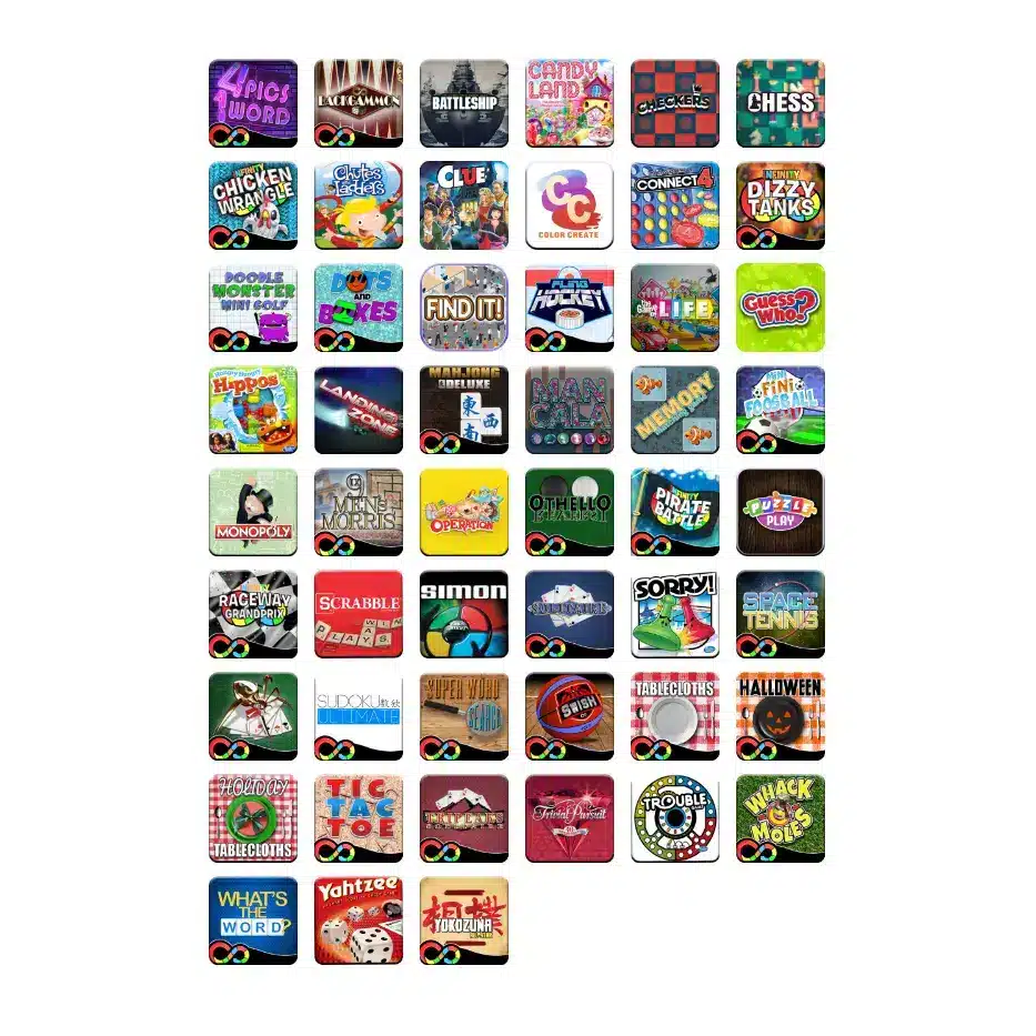 Oferind o varietate infinita de jocuri clasice si iconice, acest dispozitiv digital aduce la viata versiuni digitale ale unor jocuri de masa consacrate precum Monopoly™ de la Hasbro, Scrabble™, Trivial Pursuit™, Chutes and Ladders™, Candy Land™, Yahtzee™, puzzle-uri, carti de colorat, mini-jocuri si multe altele.
