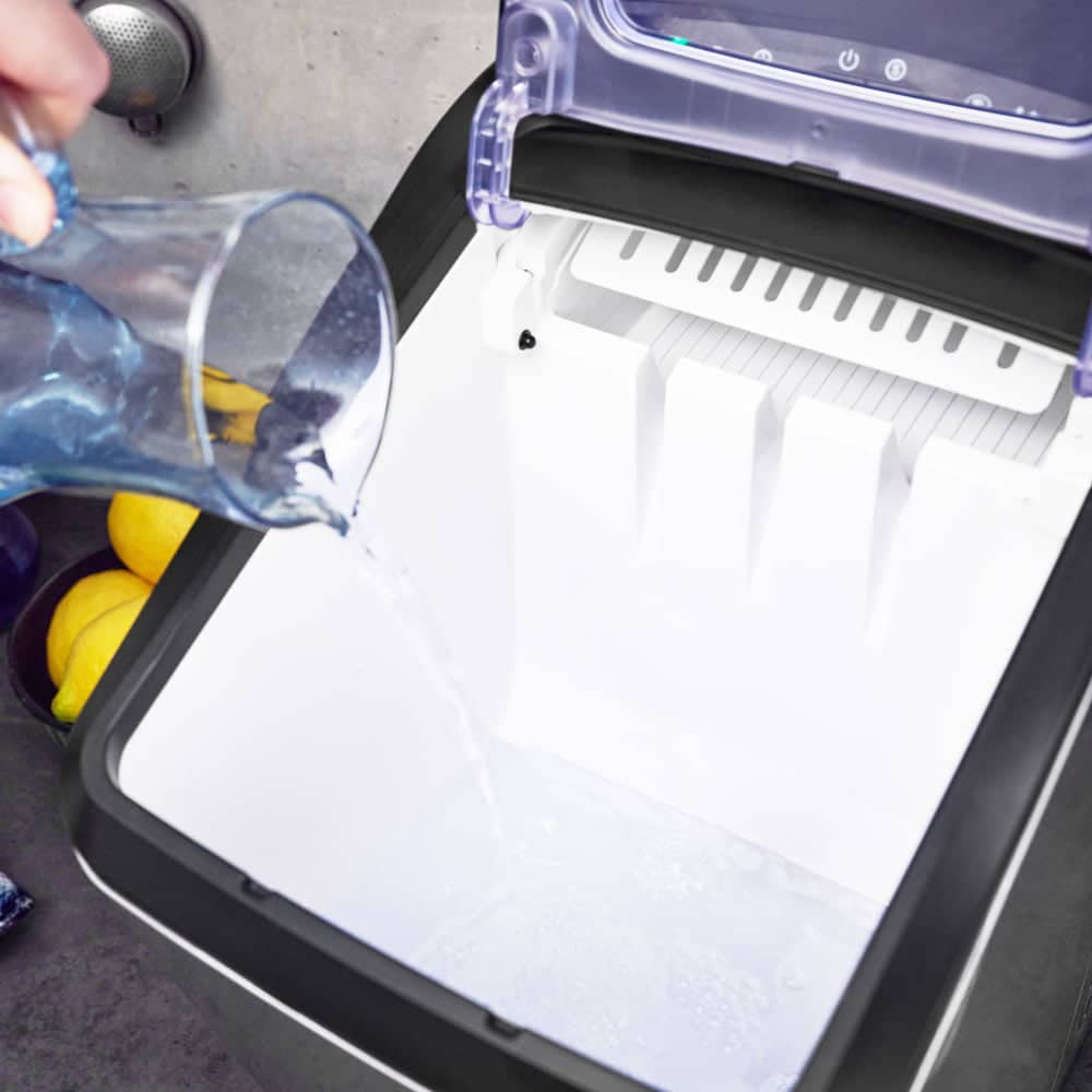 Aparatul este usor de depozitat si se potriveste oricarei incaperi. Dispozitivul vine la pachet impreuna cu un recipient detasabil pentru cuburi de gheata si lingura.