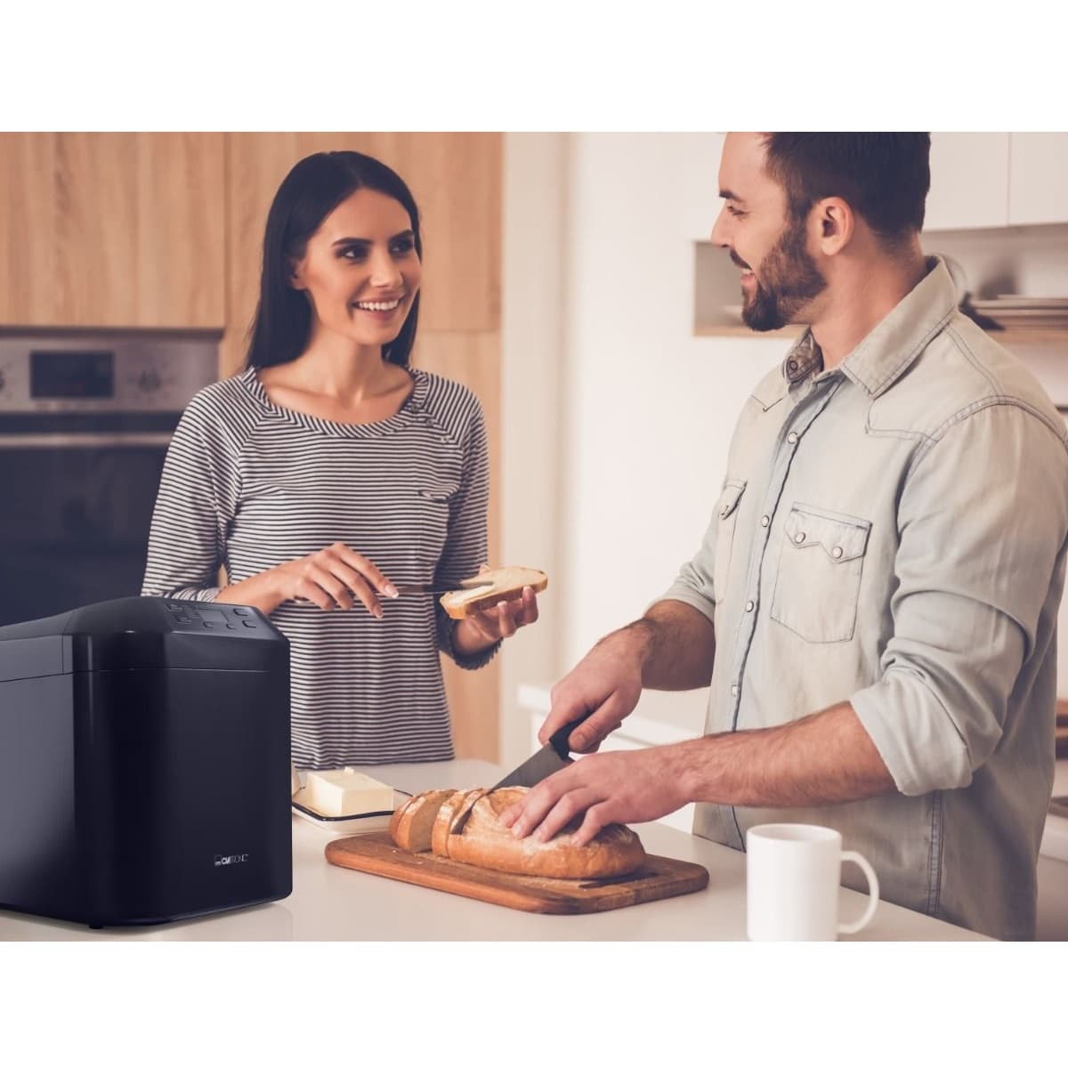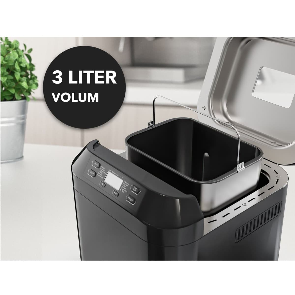 Mai mult, puteti seta timerul pentru ca aparatul sa va pregateasca paine cand doriti, astfel va puteti bucura de paine proaspata la micul dejun sau cand sositi acasa de la serviciu.