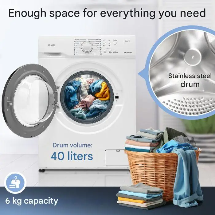 Masina de spalat rufe, de la brandul german Bomann, este fabricata din materiale de inalta calitate, iar din punct de vedere energetic este extrem de eficienta si economa pentru locuinta ta! Astfel, poti spala haine cu un consum extrem de redus, fara a face compromisuri asupra rezultatului spalarii.
