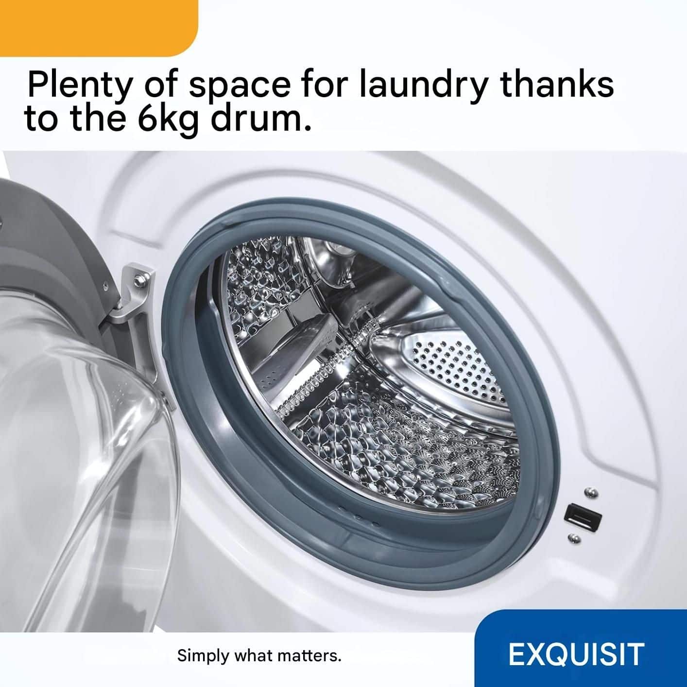 Tamburul are o capacitate de pana la 6 kg de rufe cu o viteza de centrifugare de maxim 1.100 rpm.