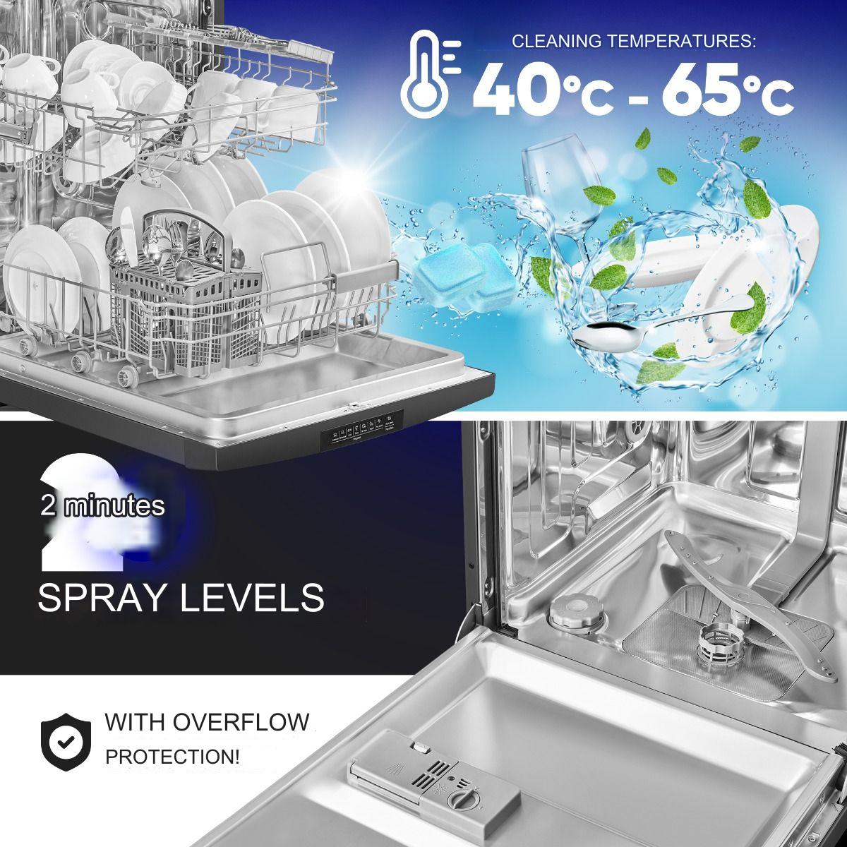 Cu o capacitate de 14 seturi, te vei asigura ca toate vasele, paharele si tacamurile tale vor avea locul lor si vor fi curatate temeinic – ideal pentru mesele de familie sau pentru petreceri.