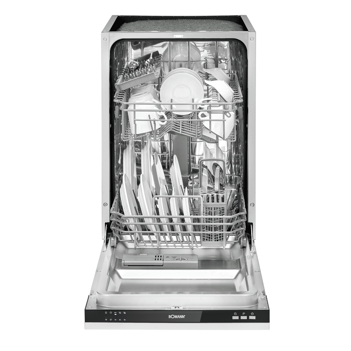 Rezultate perfecte fara efort. Castigati timp eliminand efortul zilnic din bucatarie, cu masina de spalat vase GSPE7415VI de la Bomann. Aceasta masina de spalat vase incorporabila ofera mult spatiu pentru tacamuri, farfurii, cani si pahare (9 locuri). Cele 5 programe cu care este dotata sunt selectabile individual si sunt potrivite pentru diferite tipuri de vase.