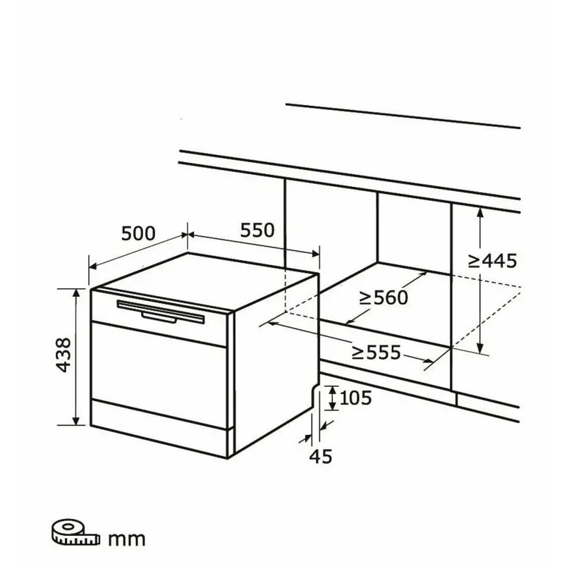 Un atuu al acestui dispozitiv este dimensiunea sa compacta care va permite sa plasati masina oriunde, folosindu-va de ea in orice moment. Ba mai mult, functionalitatile sale multiple precum pornirea intarziata, indicatorul pentru detergent insuficient, dar si deschiderea automata a usii la finalizarea programului o fac sa fie ideala pentru orice incapere. Datorita formei sale compacte, mini masina de spalat vase poate fi si incorporabila.