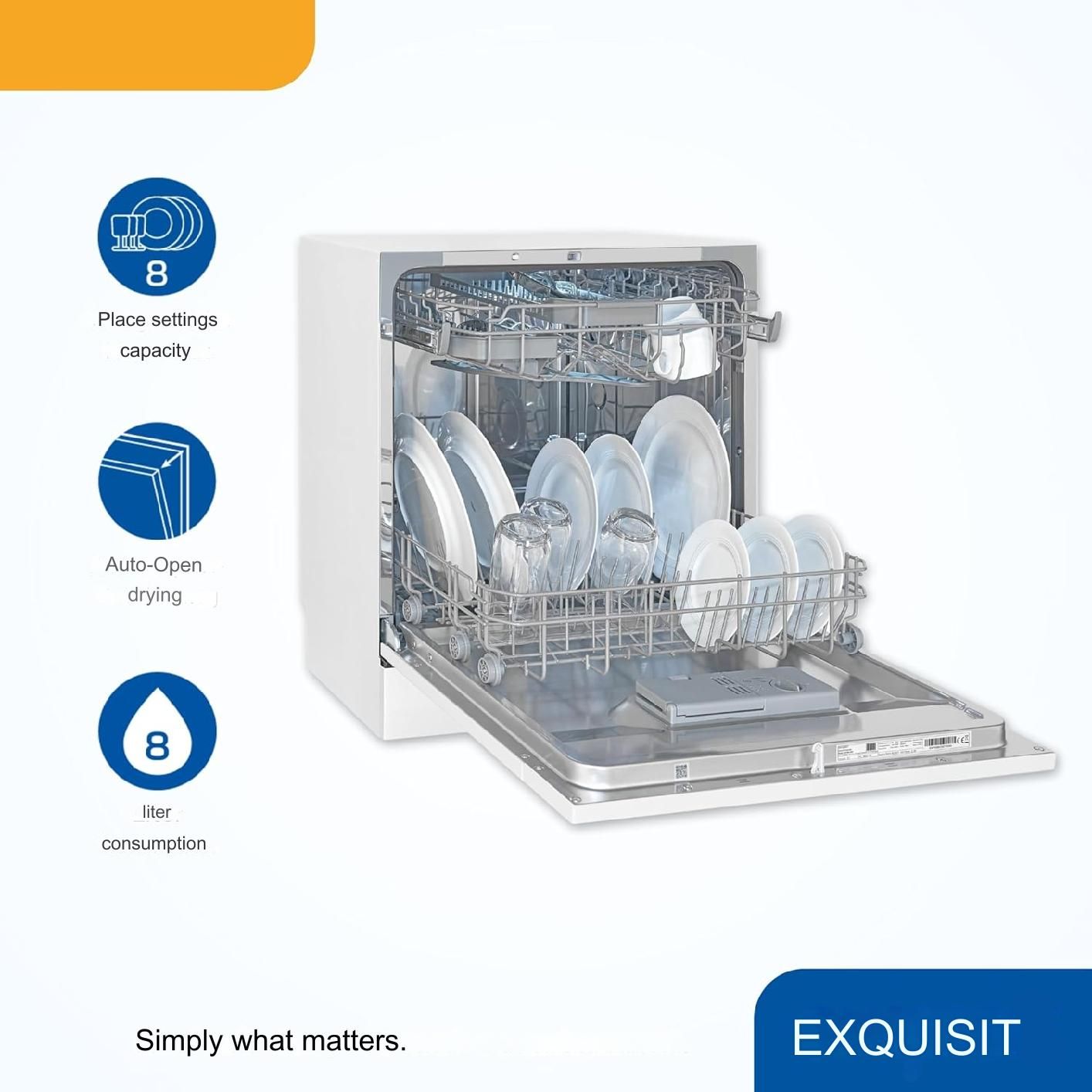 Masina de spalat vase slim de la producatorul german Exquisit va deveni micul ajutor acasa, in casa de vacanta sau rulota. Cu o capacitate de 6 seturi, aceasta masina de spalat vase este dotata cu 7 programe de spalare, inclusiv unul de autocuratare pentru o utilizare mult mai eficienta.