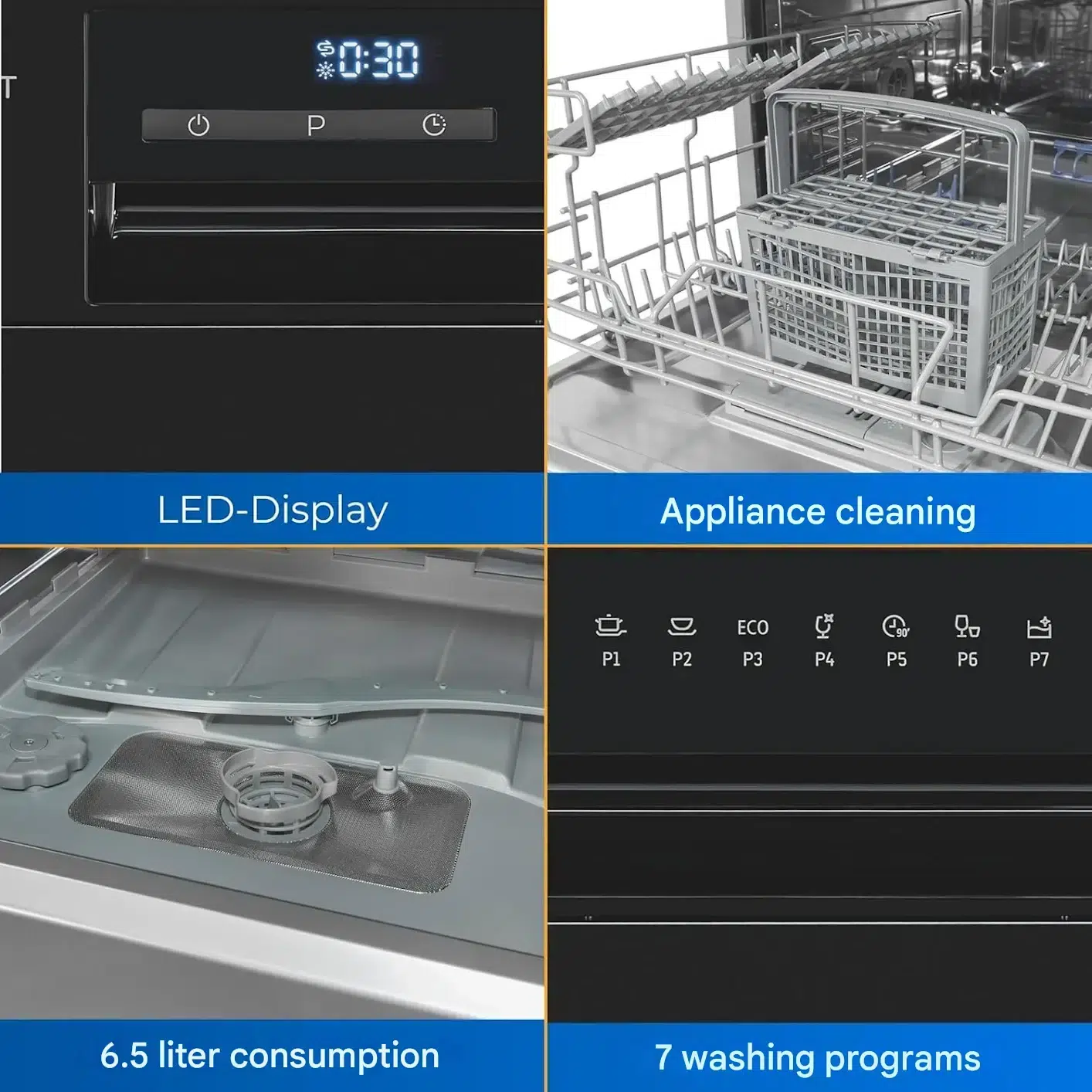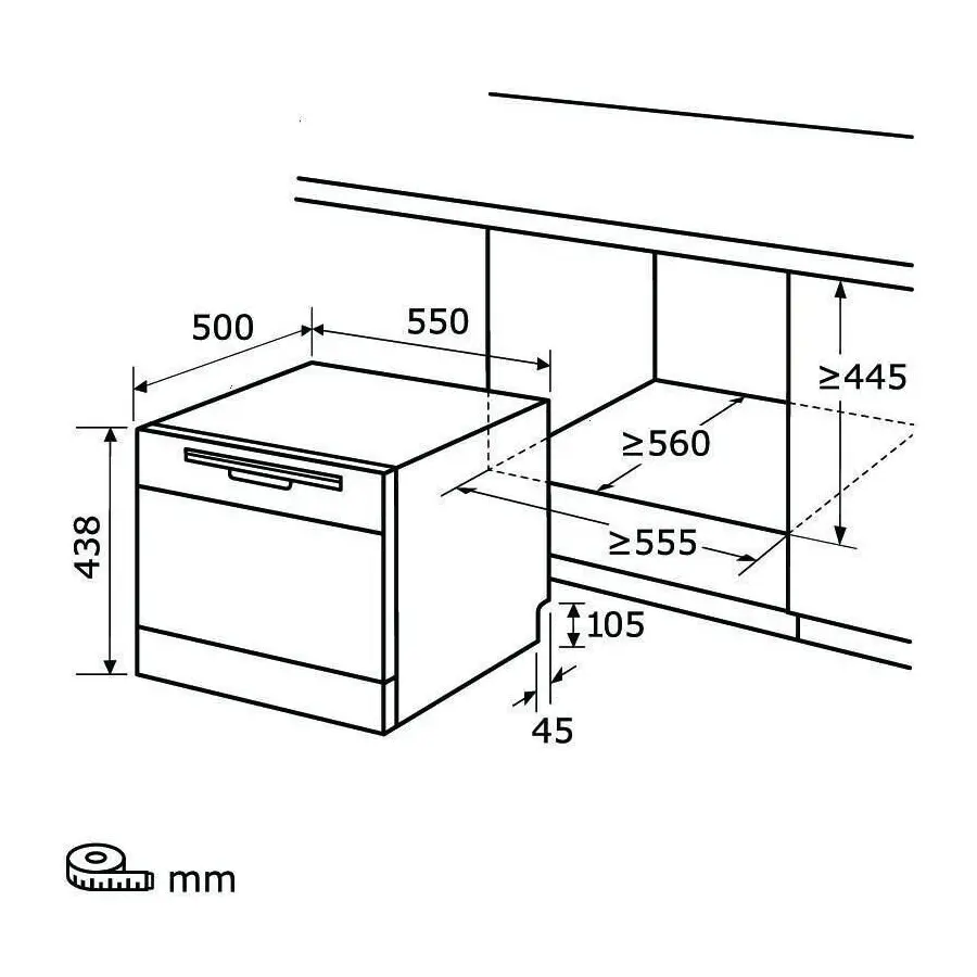 Un atuu al acestui dispozitiv este dimensiunea sa compacta care va permite sa plasati masina oriunde, folosindu-va de ea in orice moment. Ba mai mult, functionalitatile sale multiple precum pornirea intarziata, indicatorul pentru detergent insuficient, dar si deschiderea automata a usii la finalizarea programului o fac sa fie ideala pentru orice incapere. Datorita formei sale compacte, masina de spalat vase poate fi si incorporabila sau undercounter.